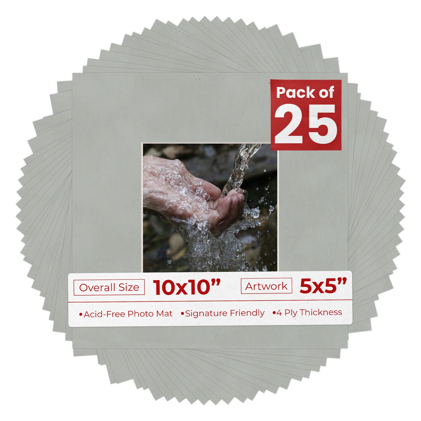 Light Grey Suede Mat Board for 10x10 Frames - Fits 5x5 Photos