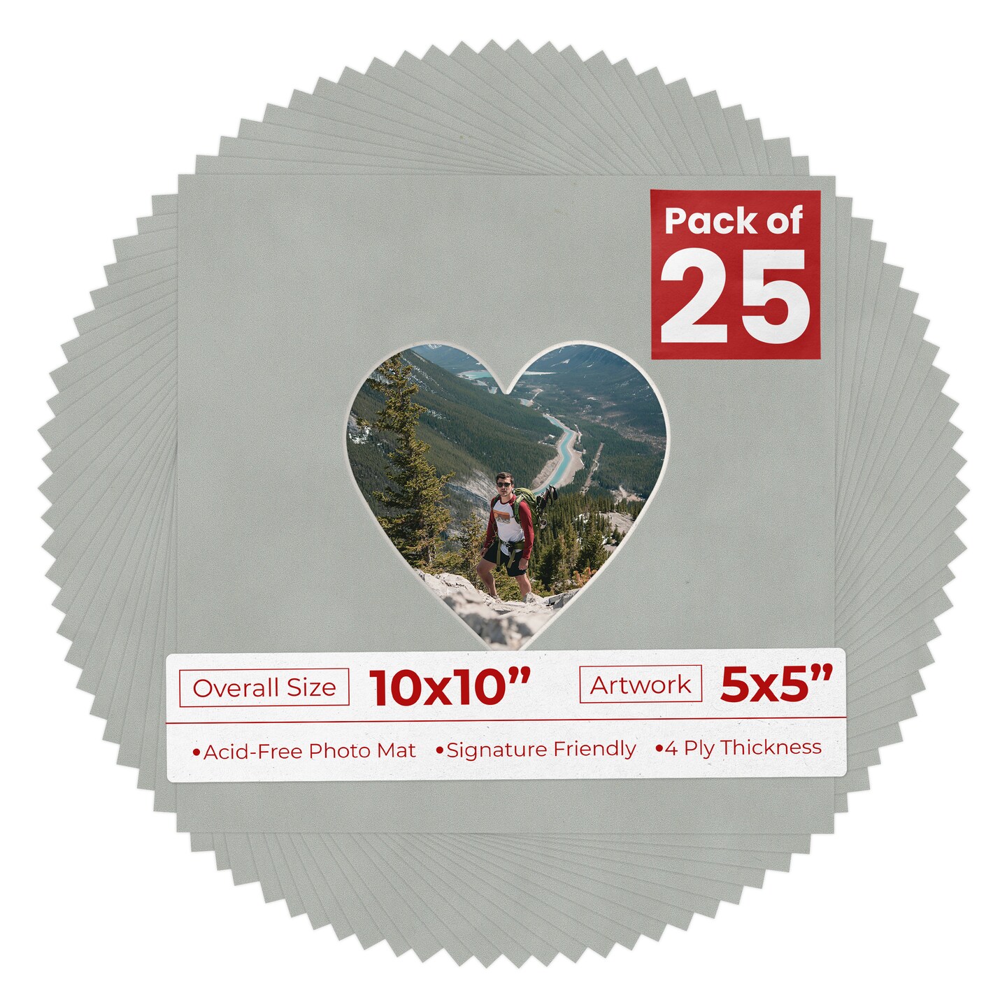 Light Grey Suede Mat Board for 10x10 Frames - Heart Opening for 5x5 Photos