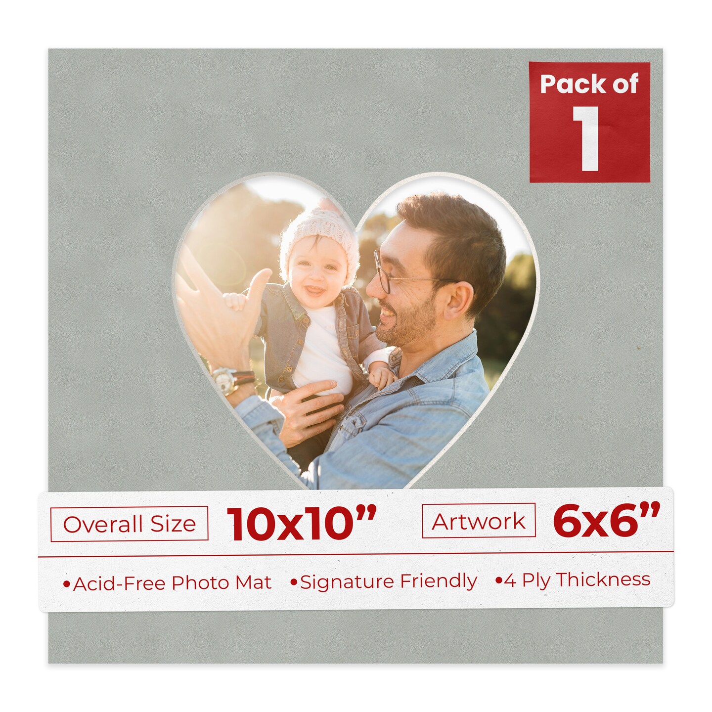Light Grey Suede Mat Board for 10x10 Frames - Heart Opening for 6x6 Photos