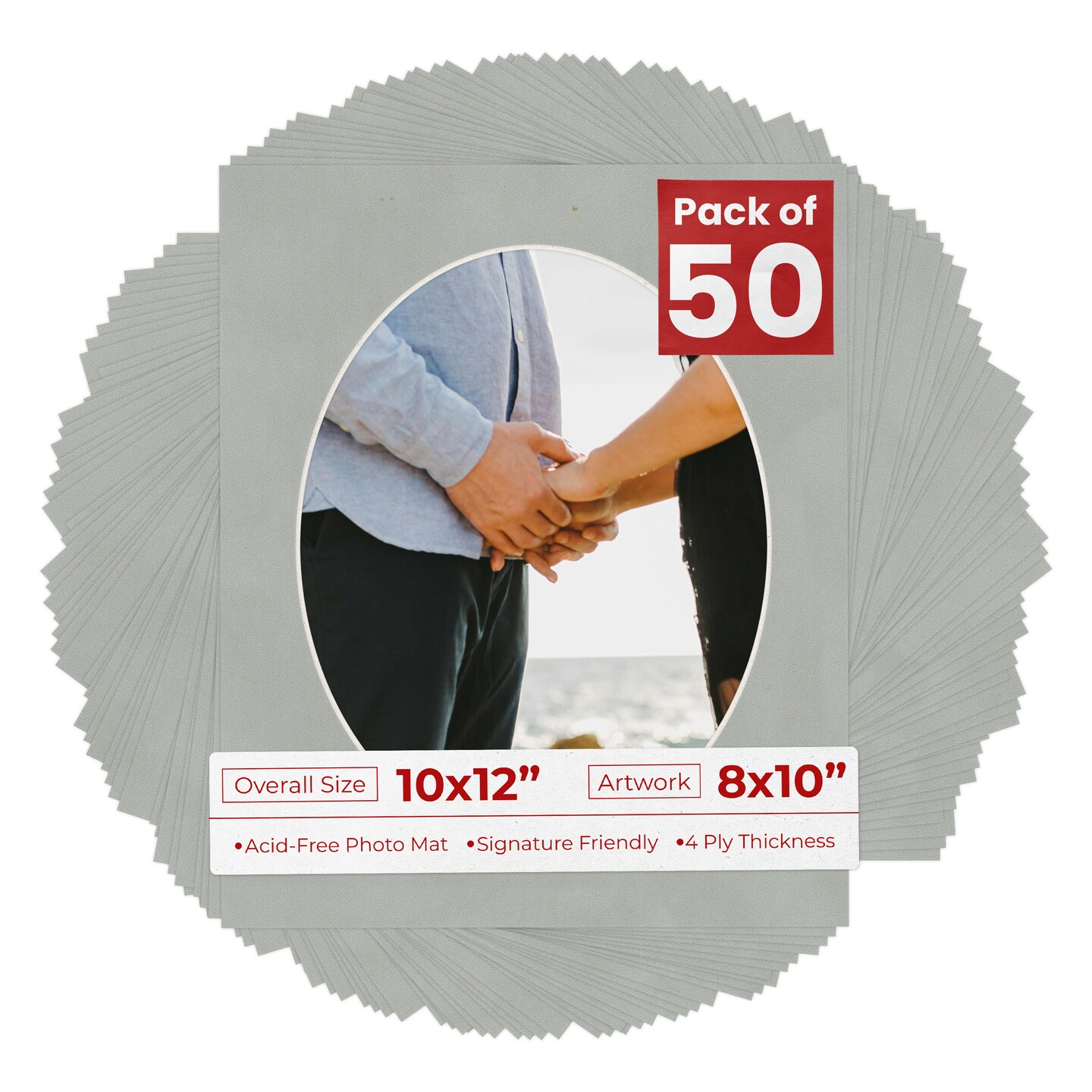 Light Grey Suede Mat Board for 10x12 Frames - Oval Opening for 8x10 Photos