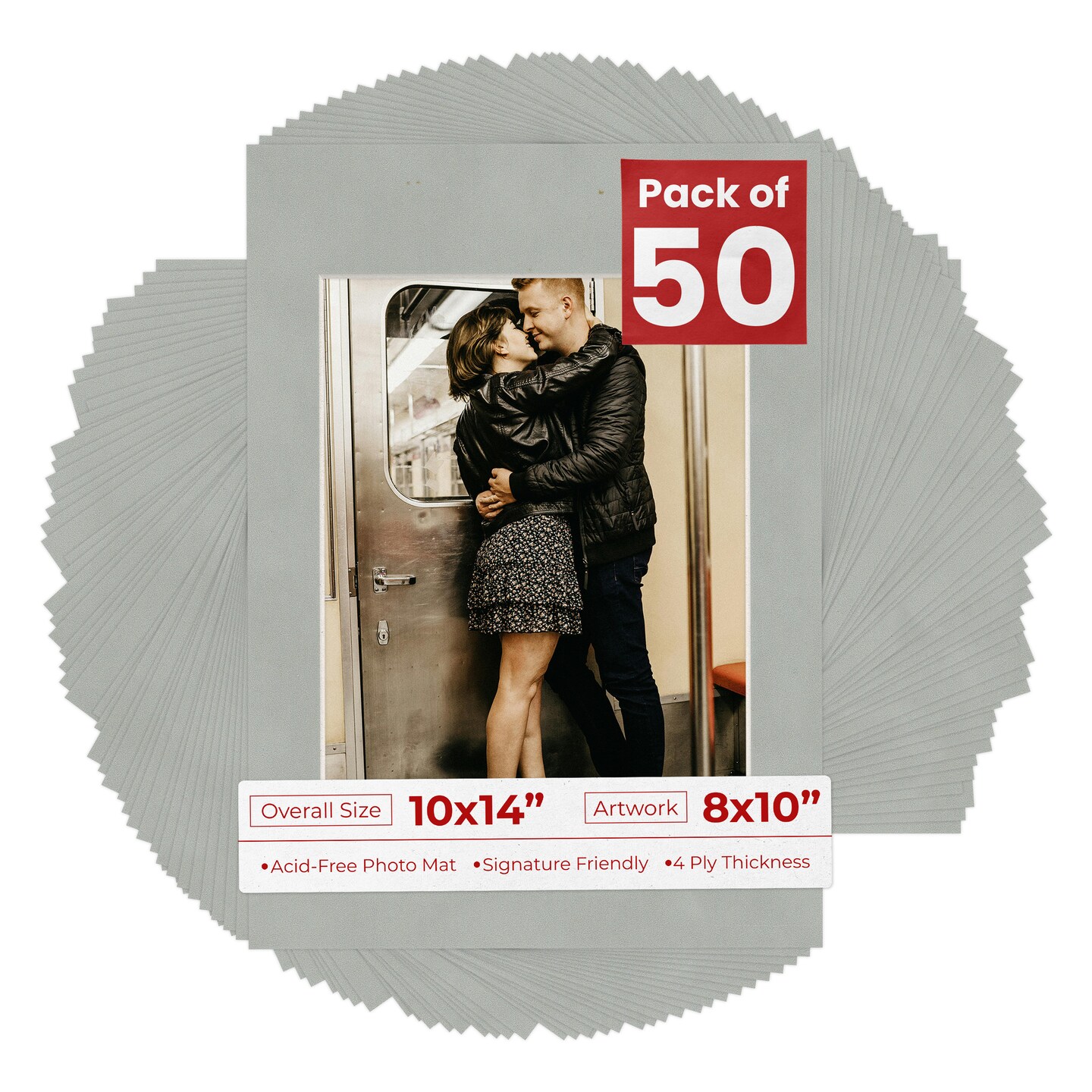 Light Grey Suede Mat Board for 10x14 Frames - Fits 8x10 Photos