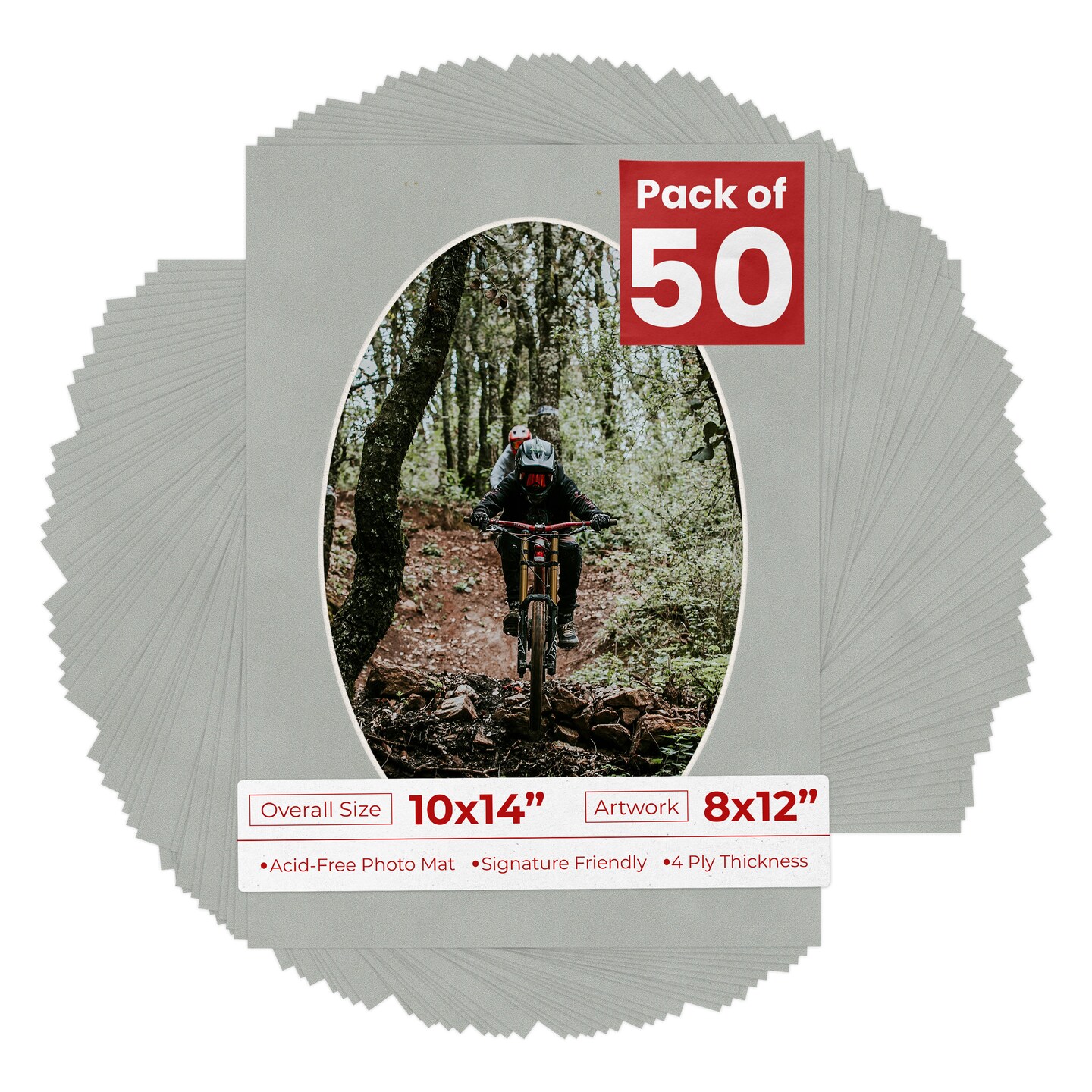 Light Grey Suede Mat Board for 10x14 Frames - Oval Opening for 8x12 Photos