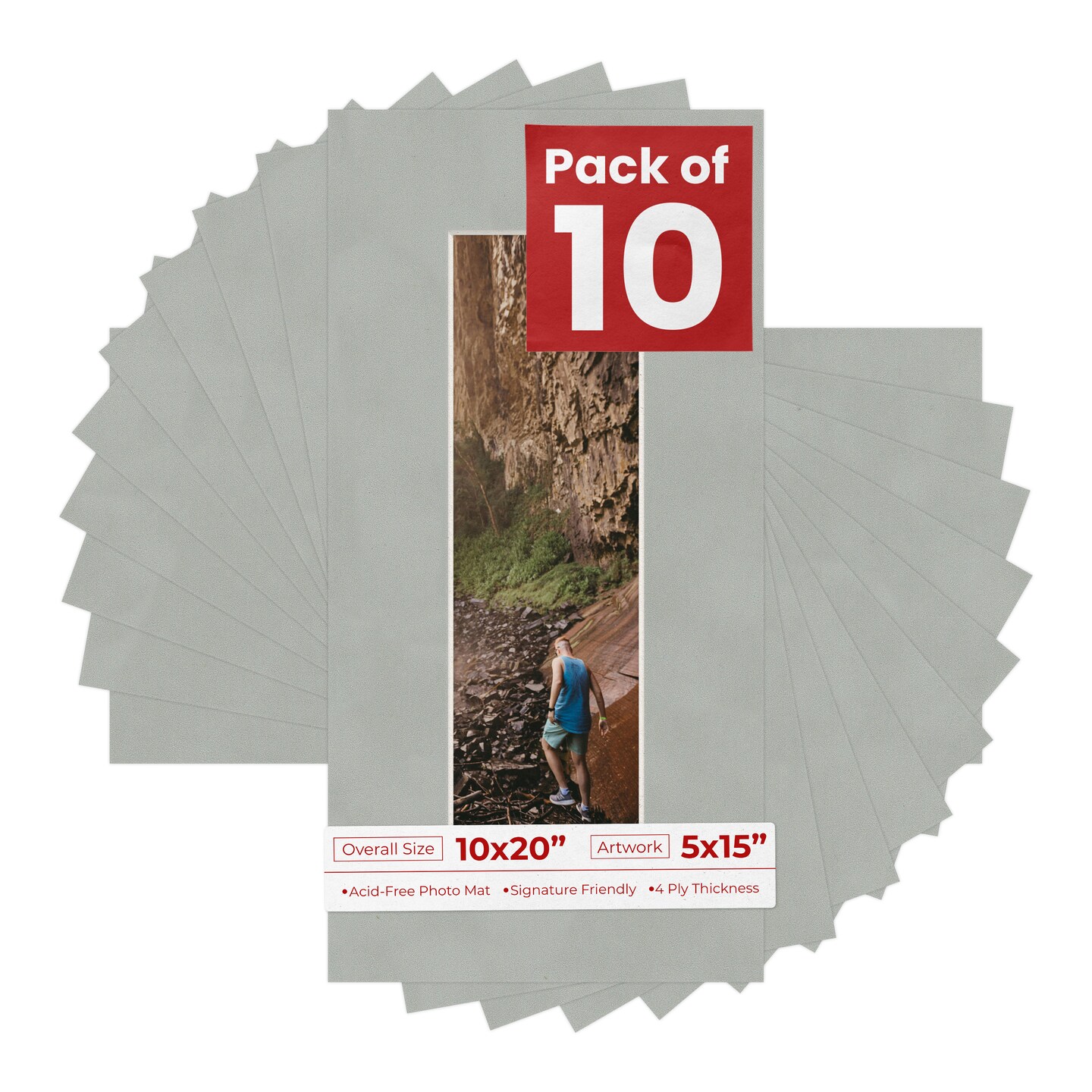 Light Grey Suede Mat Board for 10x20 Frames - Fits 5x15 Photos