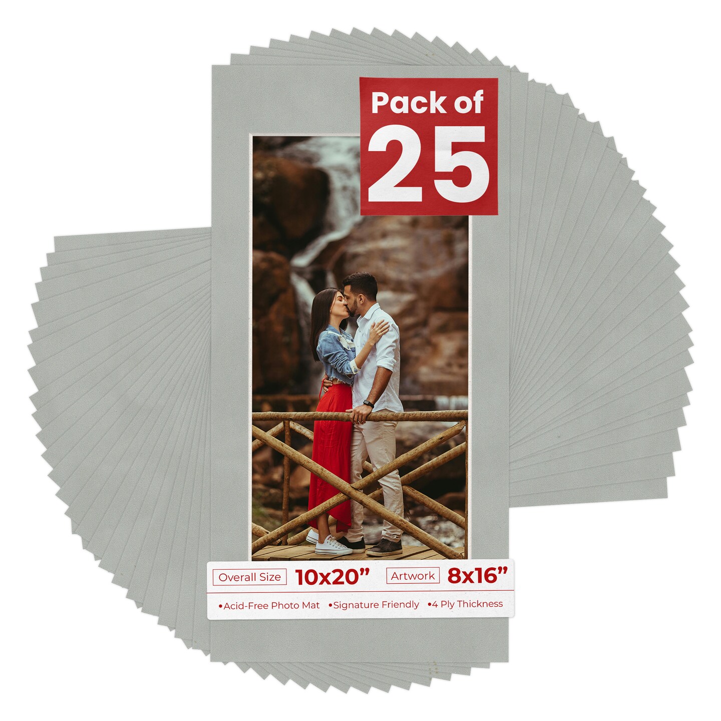 Light Grey Suede Mat Board for 10x20 Frames - Fits 8x16 Photos