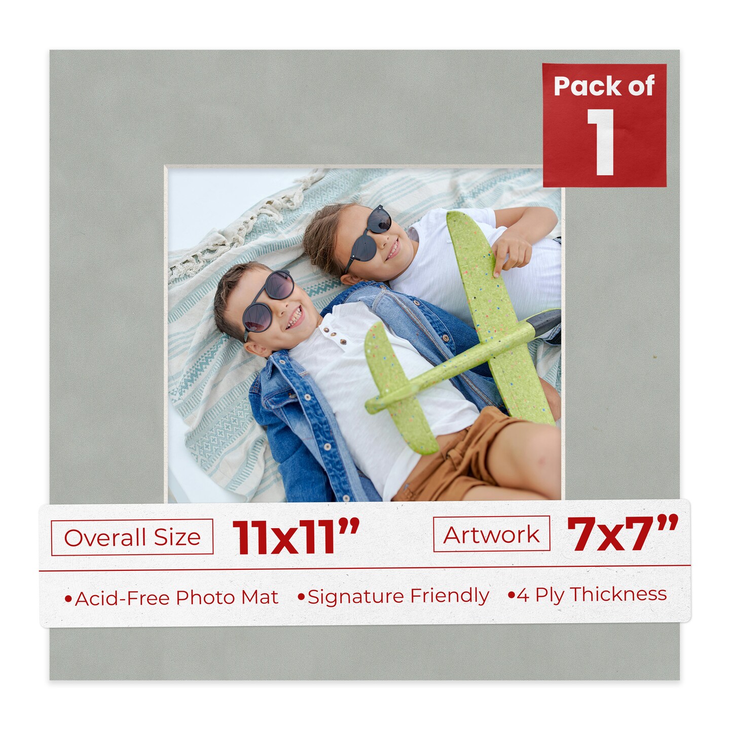 Light Grey Suede Mat Board for 11x11 Frames - Fits 7x7 Photos