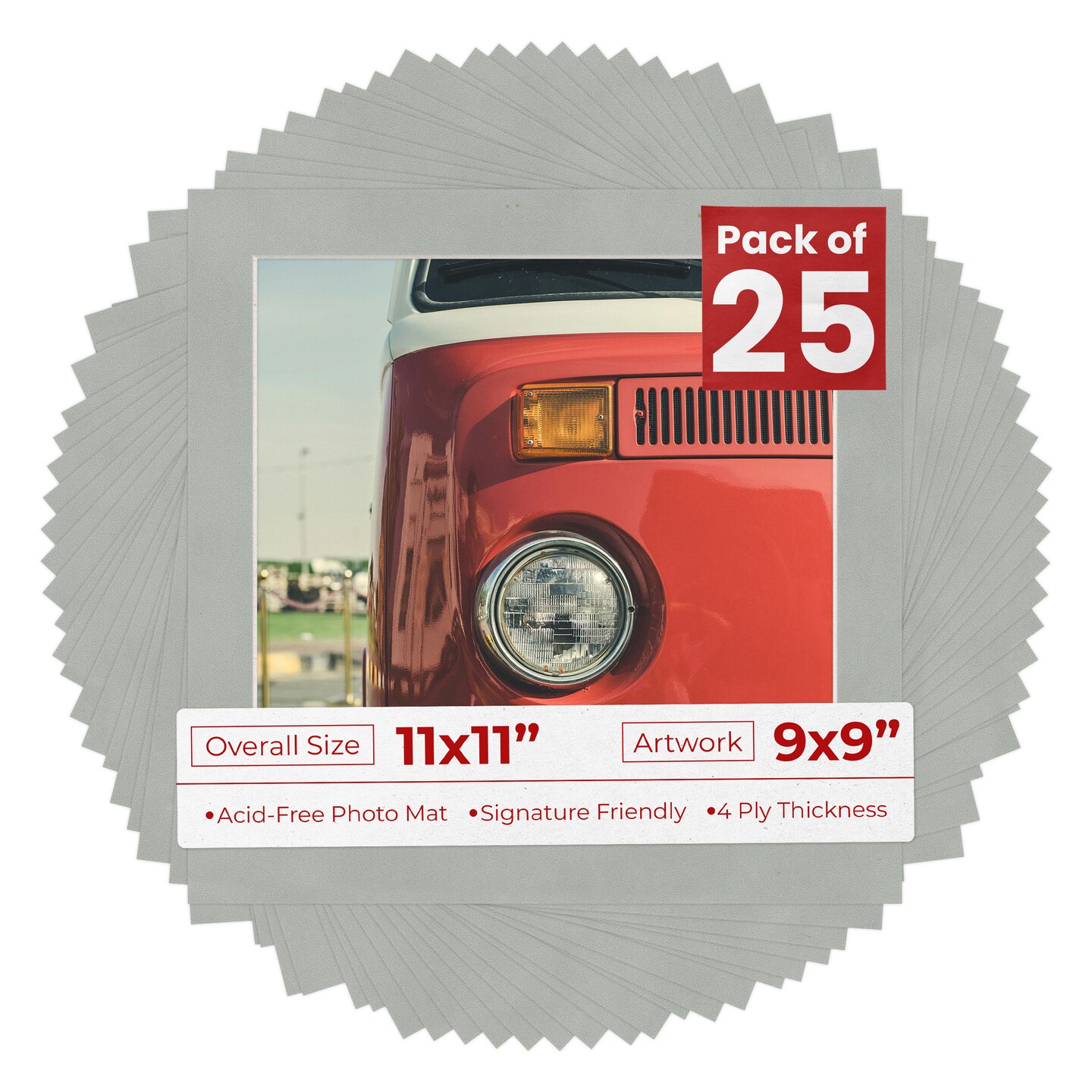 Light Grey Suede Mat Board for 11x11 Frames - Fits 9x9 Photos