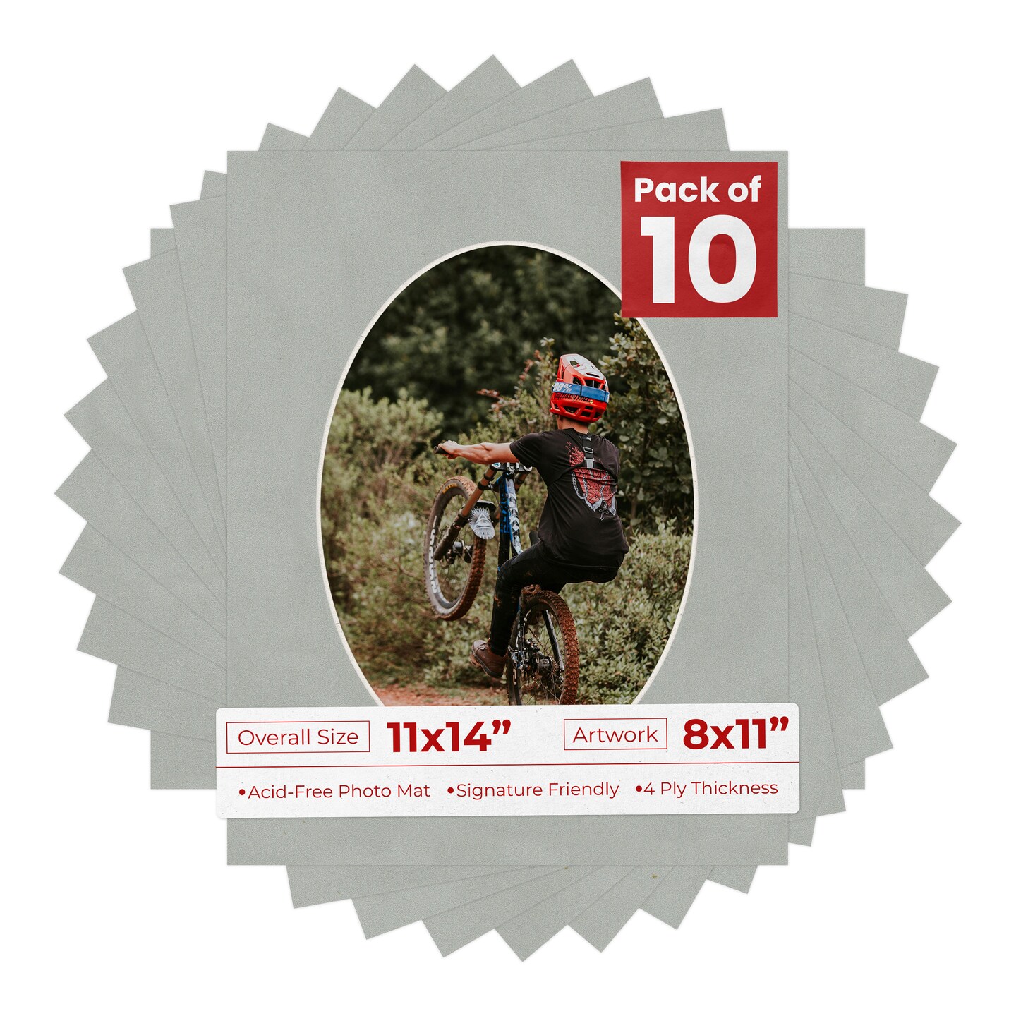 Light Grey Suede Mat Board for 11x14 Frames - Oval Opening for 8x11 Photos