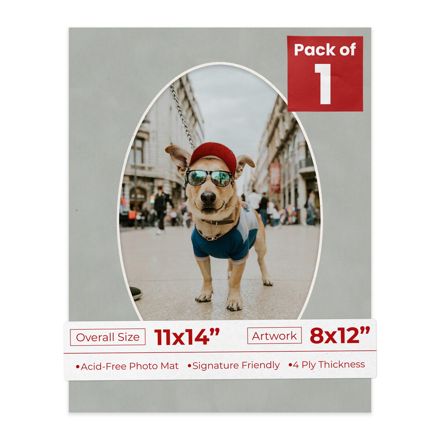Light Grey Suede Mat Board for 11x14 Frames - Oval Opening for 8x12 Photos