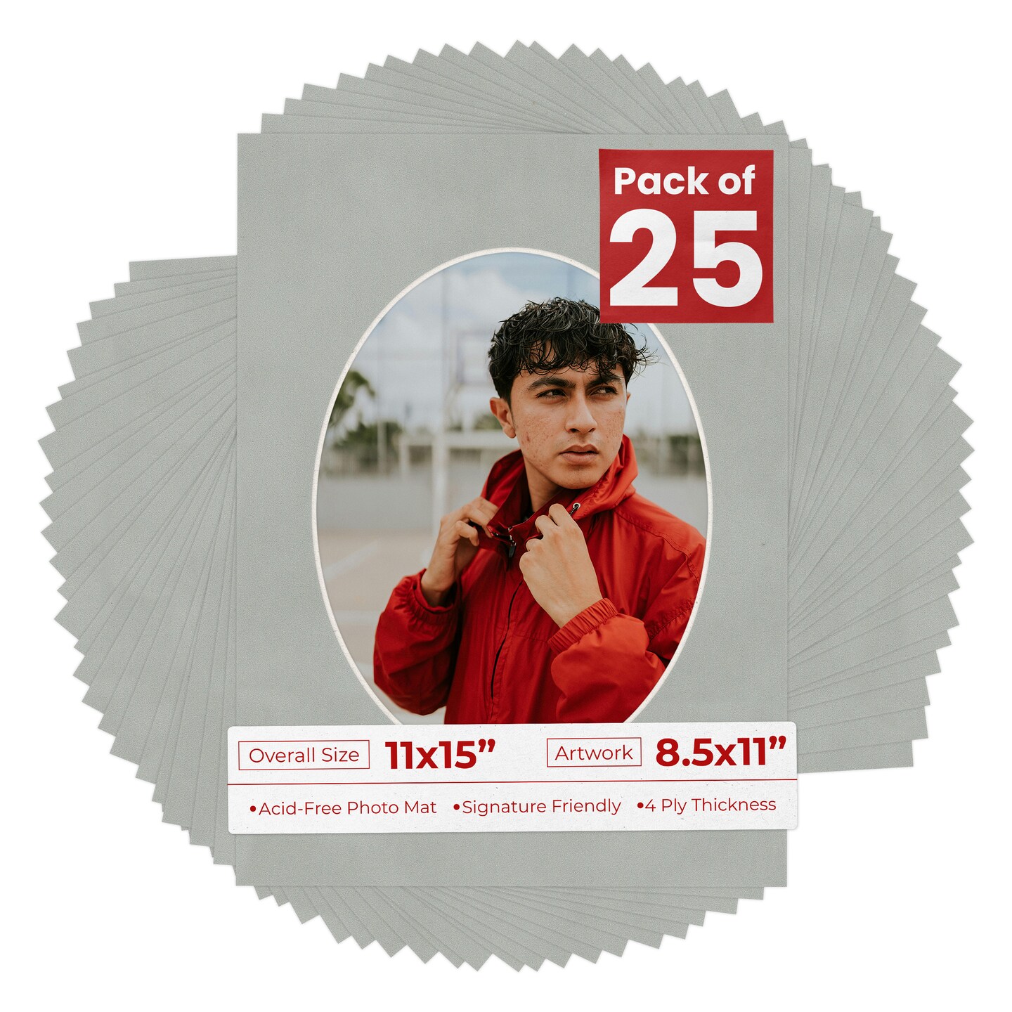 Light Grey Suede Mat Board for 11x15 Frames - Oval Opening for 8.5x11 Photos