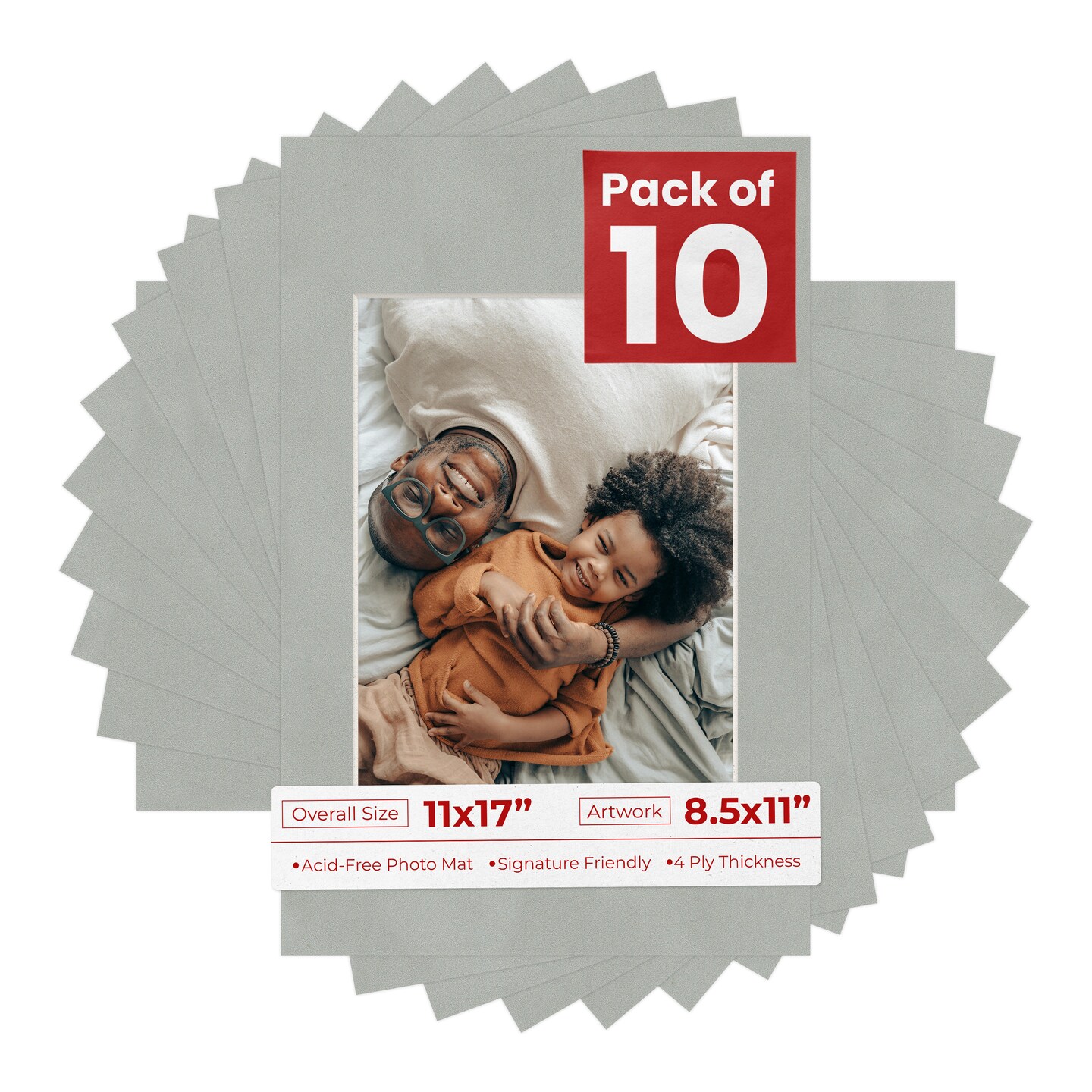 Light Grey Suede Mat Board for 11x17 Frames - Fits 8.5x11 Photos