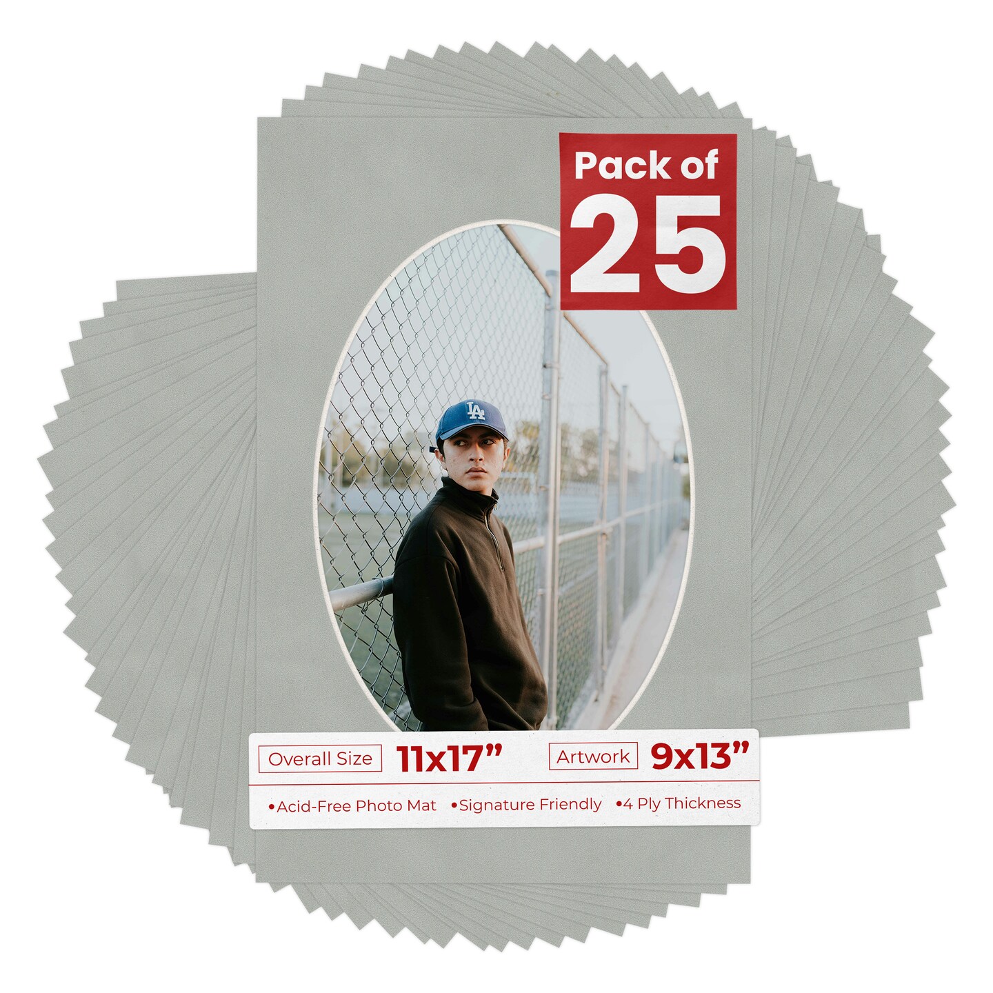 Light Grey Suede Mat Board for 11x17 Frames - Oval Opening for 9x13 Photos