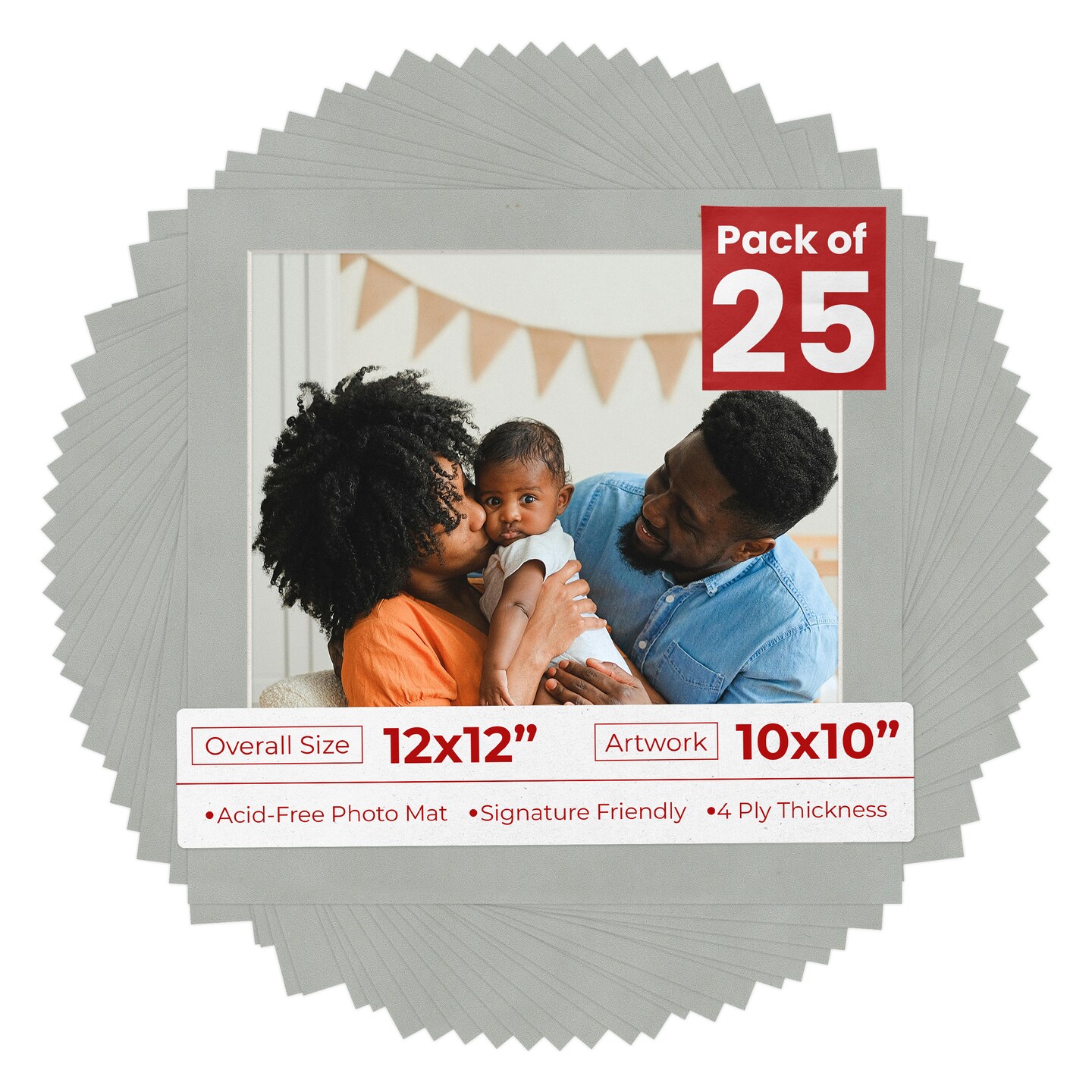 Light Grey Suede Mat Board for 12x12 Frames - Fits 10x10 Photos