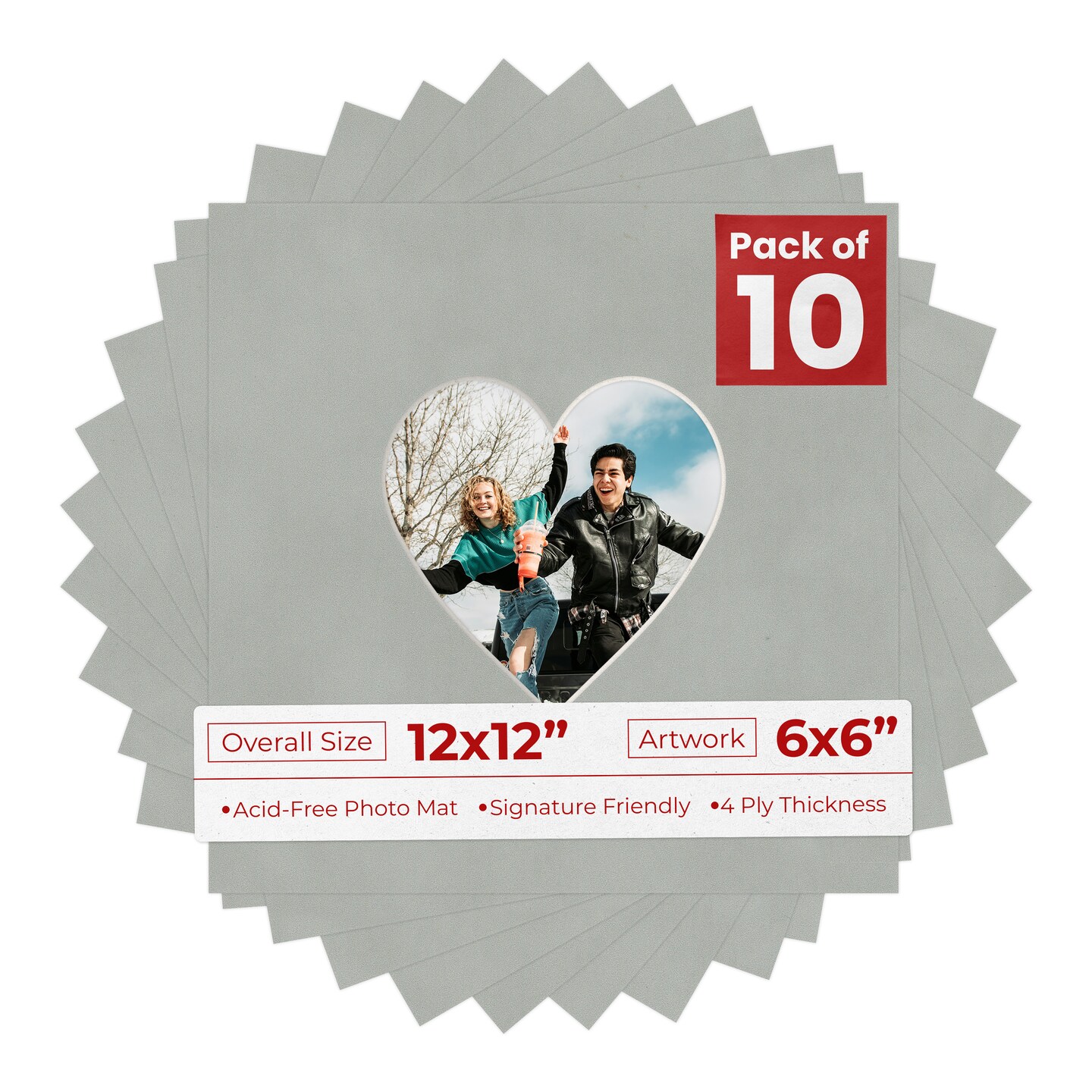 Light Grey Suede Mat Board for 12x12 Frames - Heart Opening for 6x6 Photos