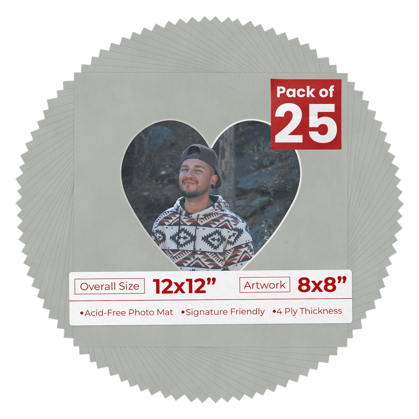 Light Grey Suede Mat Board for 12x12 Frames - Heart Opening for 8x8 Photos