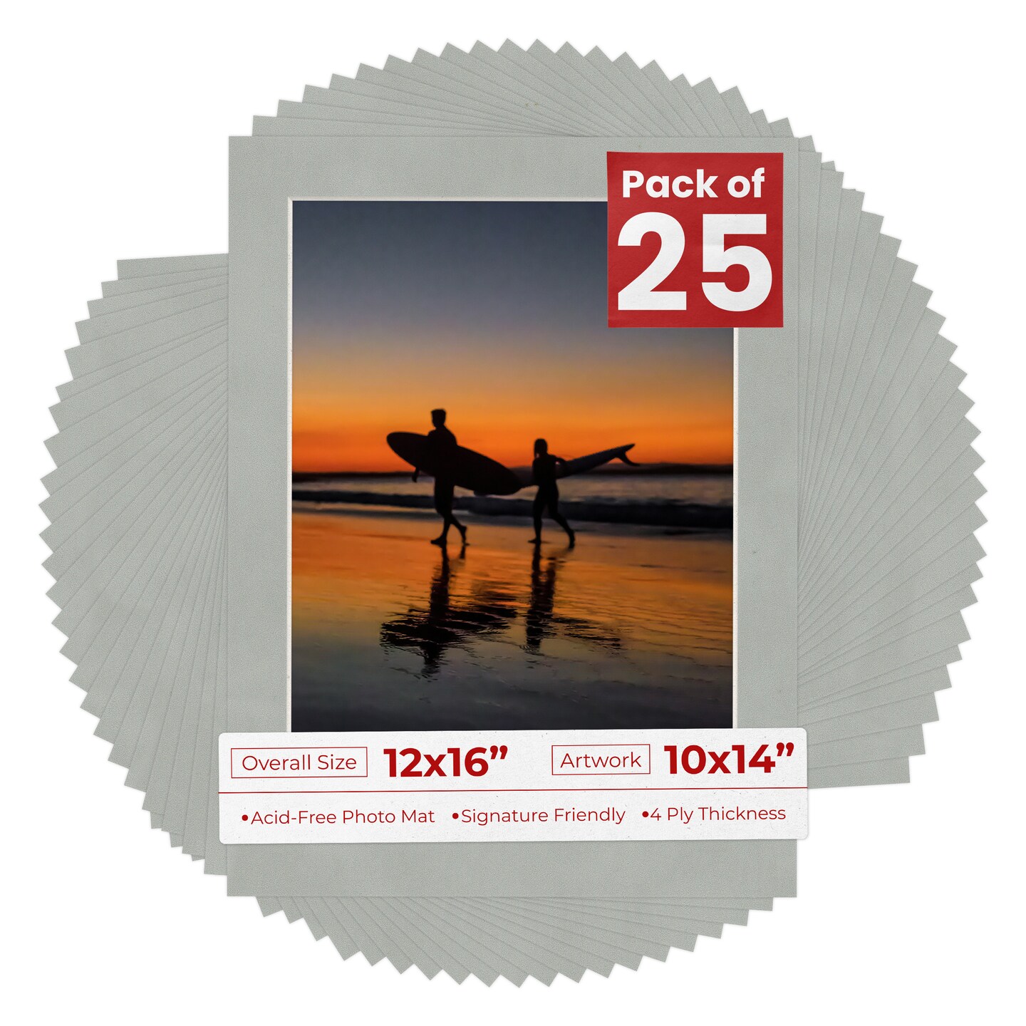 Light Grey Suede Mat Board for 12x16 Frames - Fits 10x14 Photos