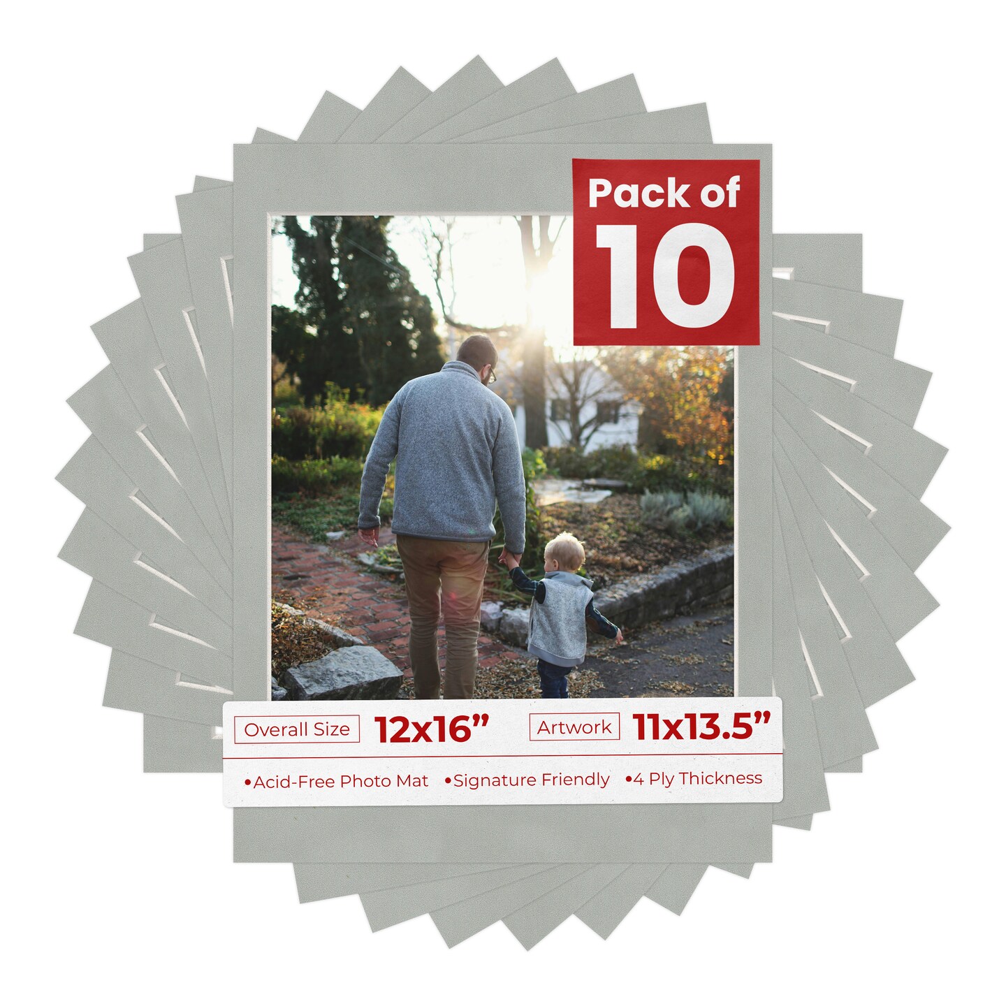 Light Grey Suede Mat Board for 12x16 Frames - Fits 11x13.5 Photos