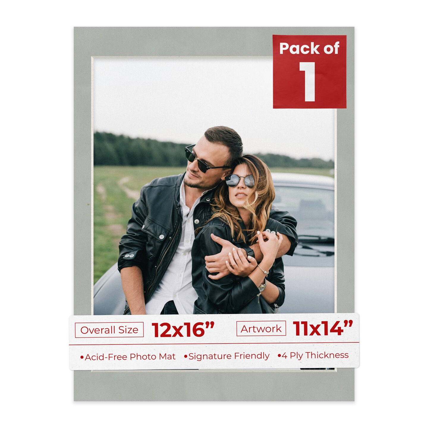 Light Grey Suede Mat Board for 12x16 Frames - Fits 11x14 Photos