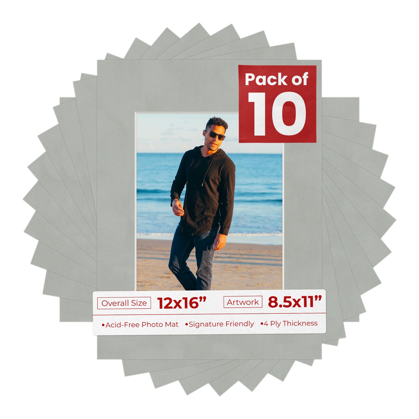 Light Grey Suede Mat Board for 12x16 Frames - Fits 8.5x11 Photos