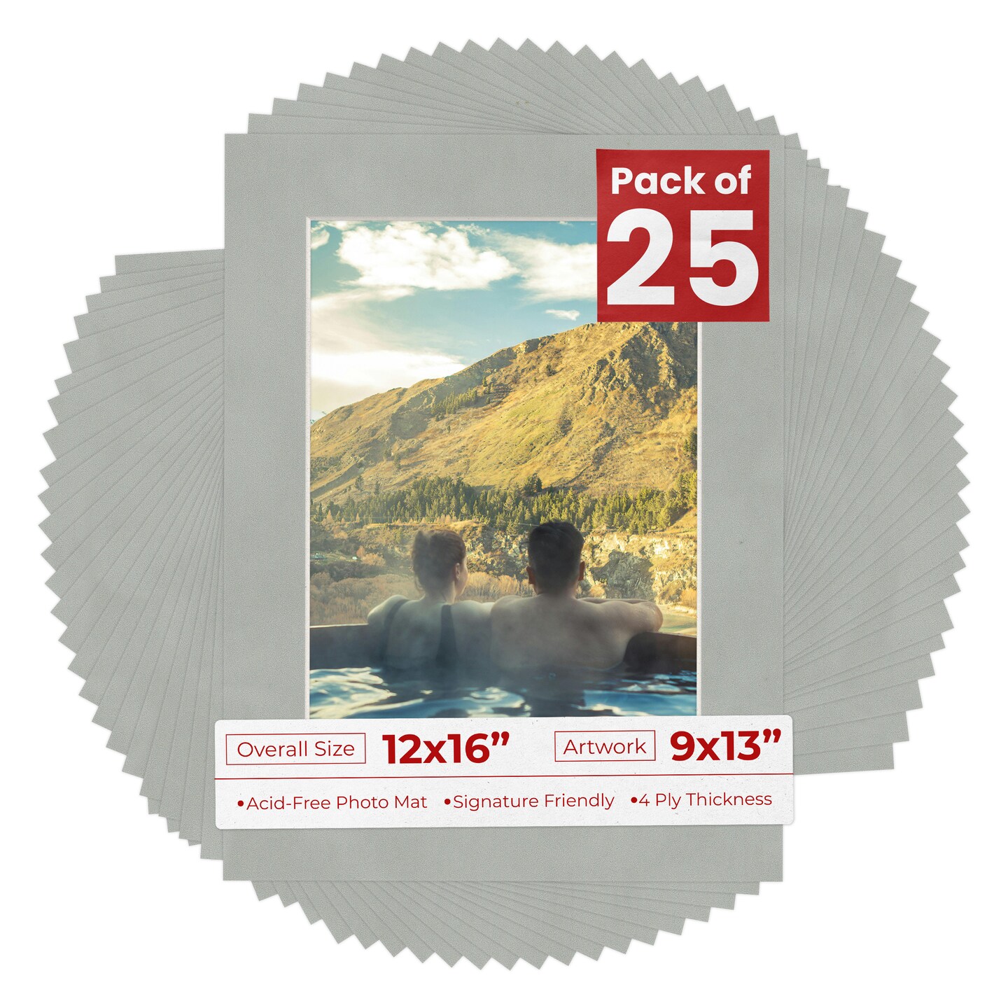 Light Grey Suede Mat Board for 12x16 Frames - Fits 9x13 Photos
