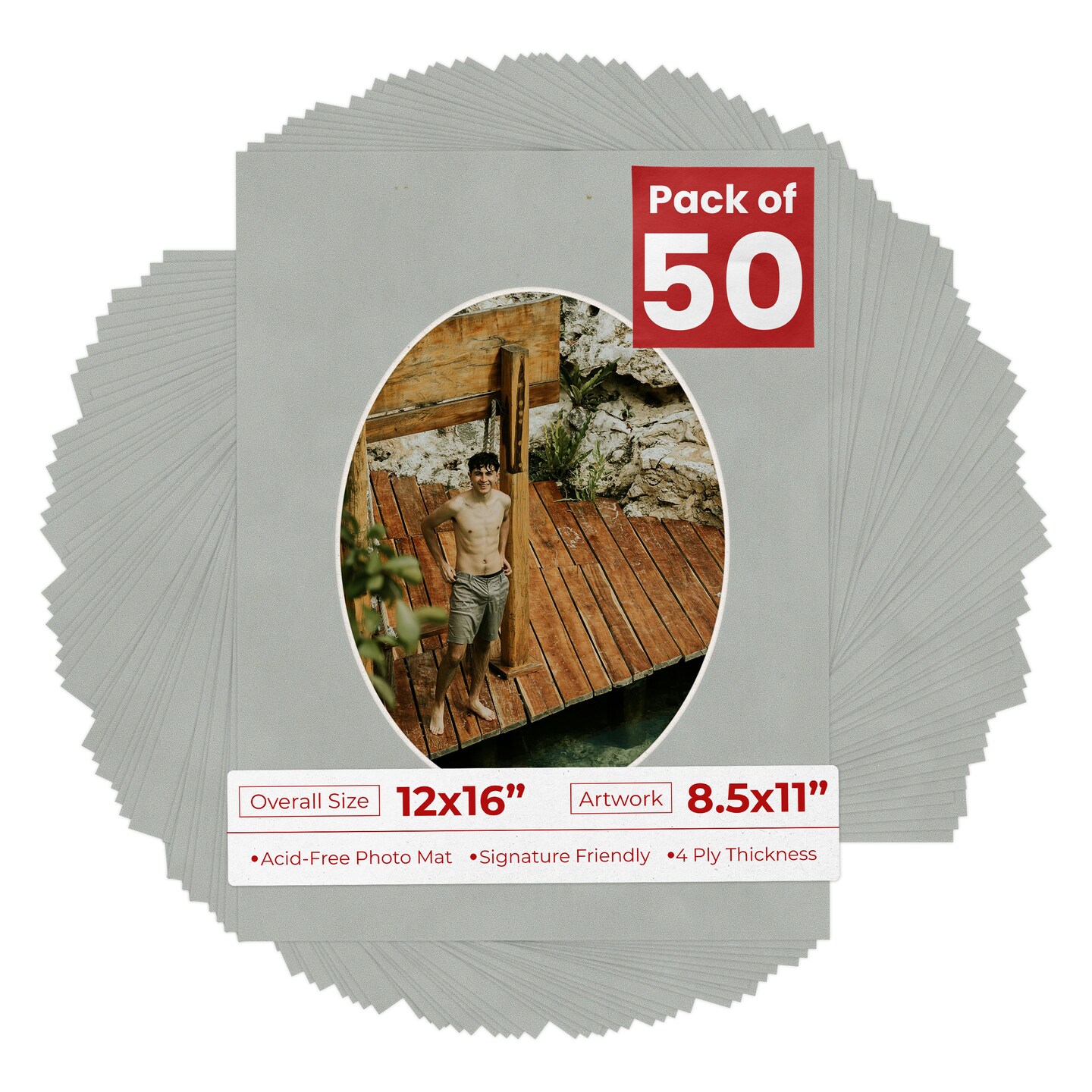 Light Grey Suede Mat Board for 12x16 Frames - Oval Opening for 8.5x11 Photos