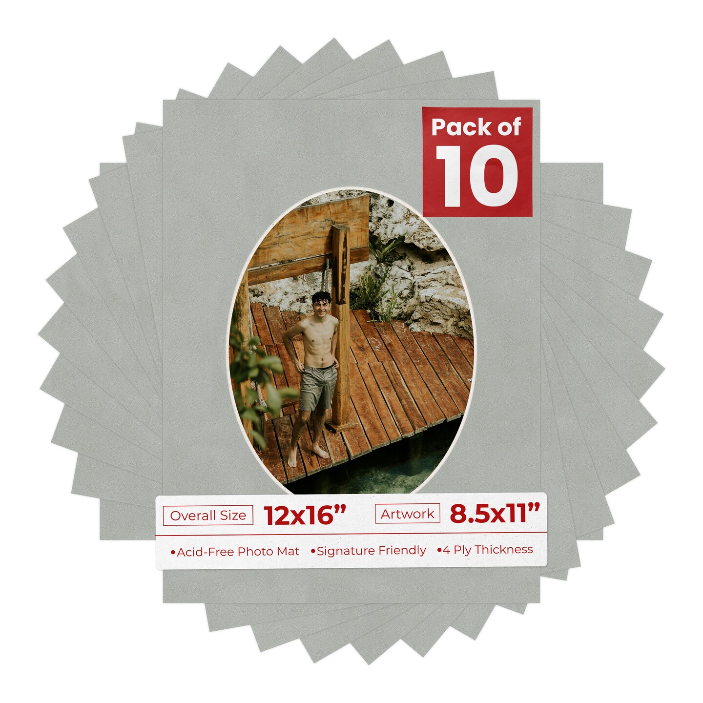 Light Grey Suede Mat Board for 12x16 Frames - Oval Opening for 8.5x11 Photos