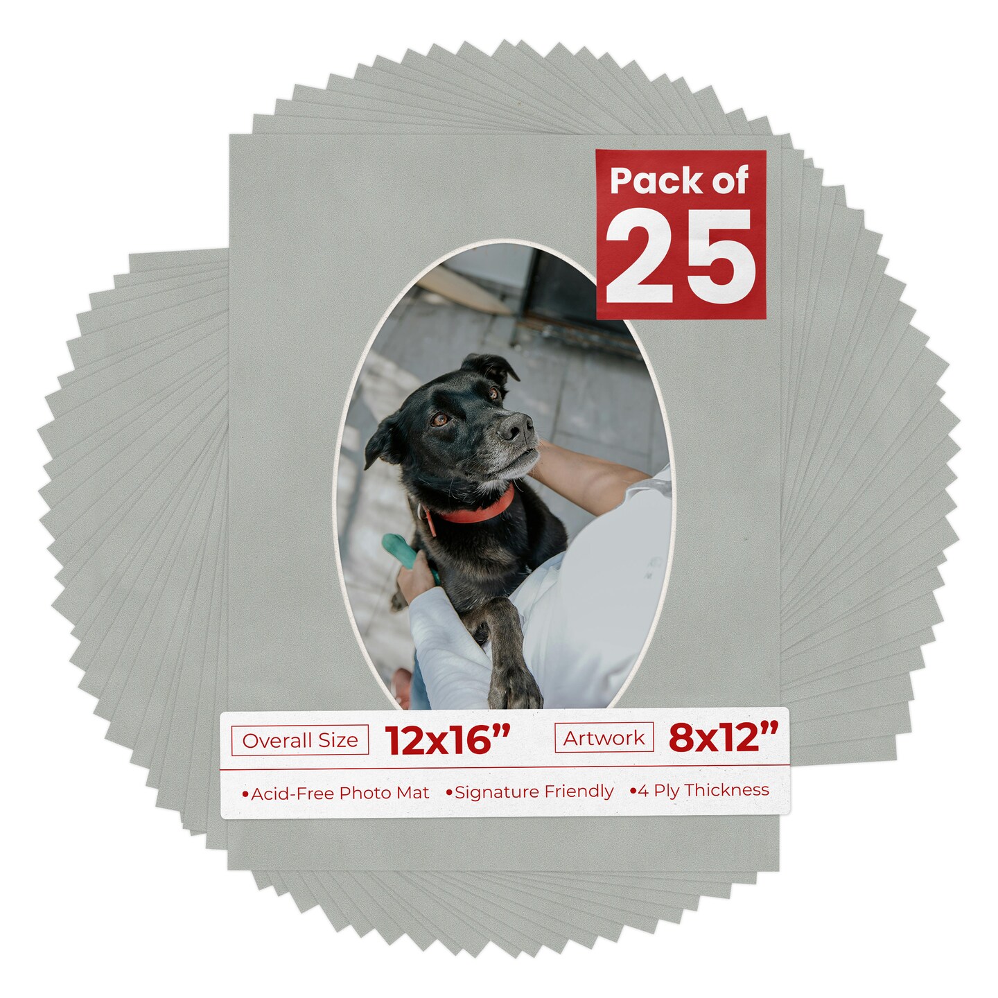 Light Grey Suede Mat Board for 12x16 Frames - Oval Opening for 8x12 Photos