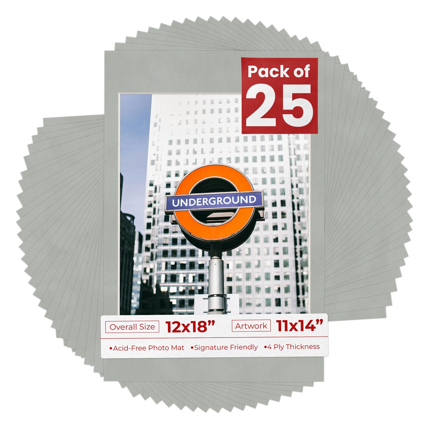 Light Grey Suede Mat Board for 12x18 Frames - Fits 11x14 Photos