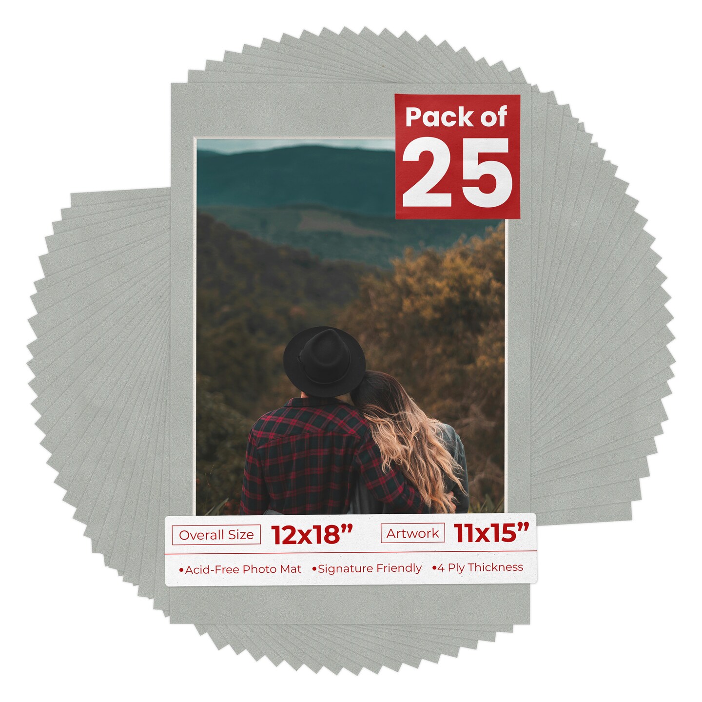 Light Grey Suede Mat Board for 12x18 Frames - Fits 11x15 Photos