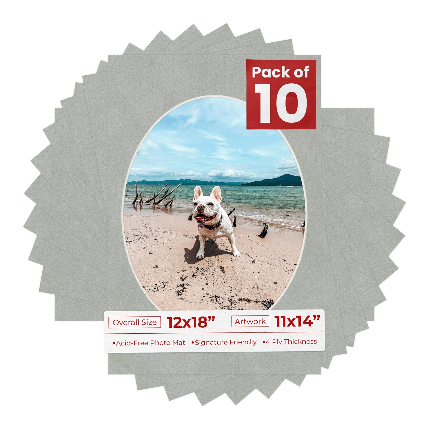 Light Grey Suede Mat Board for 12x18 Frames - Oval Opening for 11x14 Photos