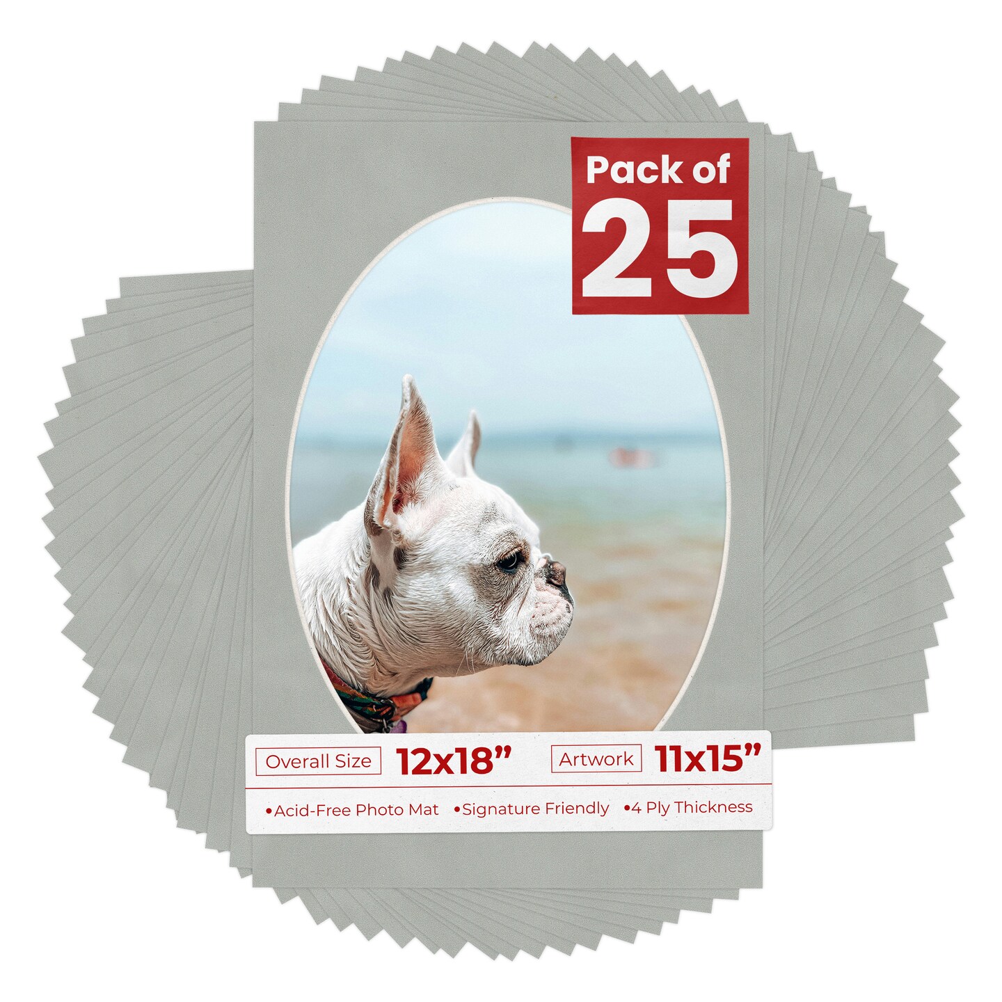 Light Grey Suede Mat Board for 12x18 Frames - Oval Opening for 11x15 Photos
