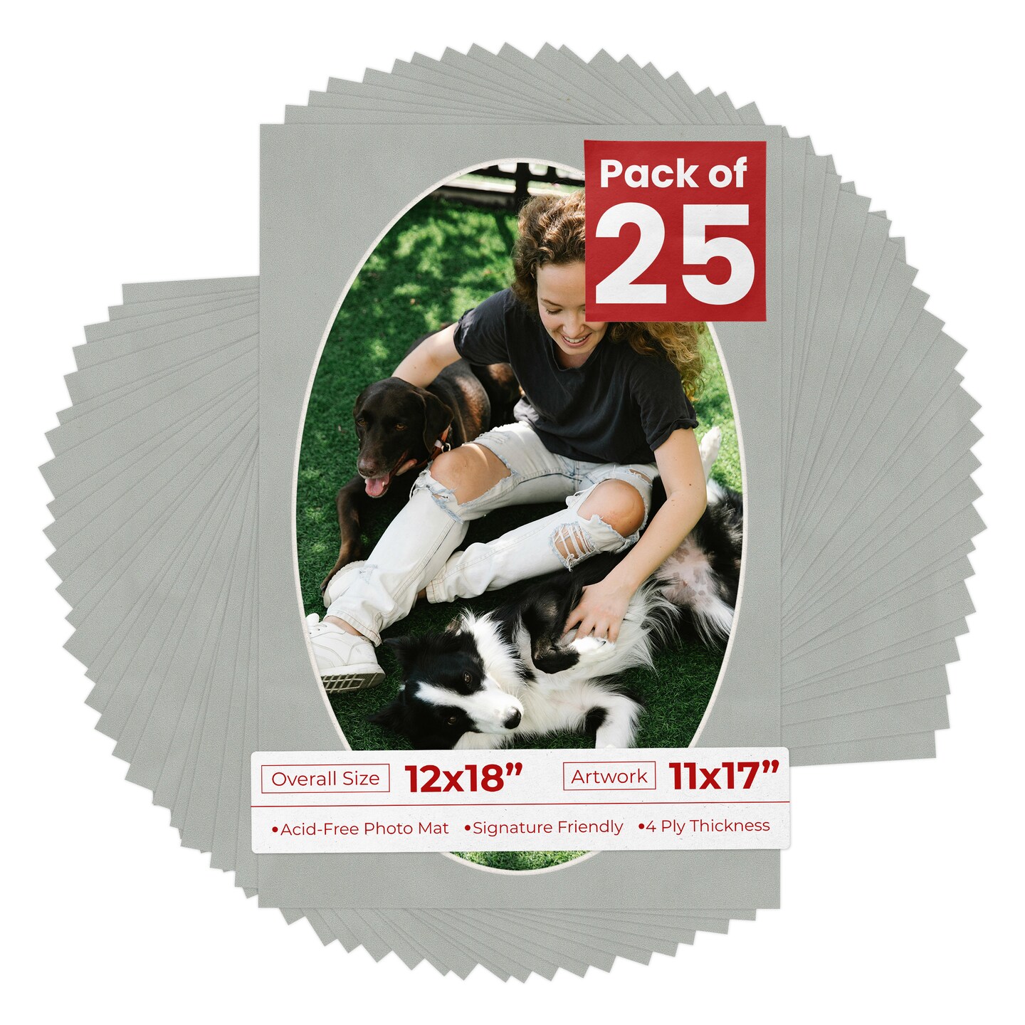 Light Grey Suede Mat Board for 12x18 Frames - Oval Opening for 11x17 Photos