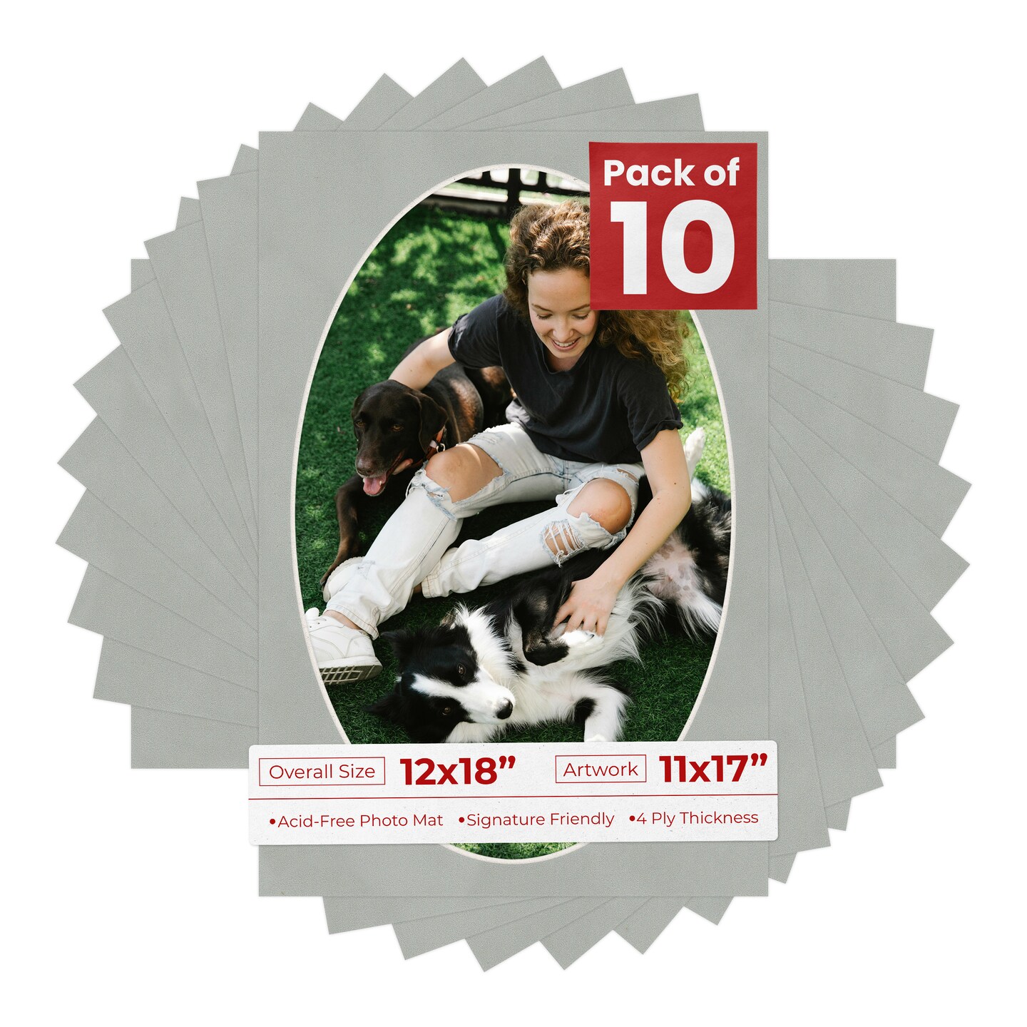 Light Grey Suede Mat Board for 12x18 Frames - Oval Opening for 11x17 Photos