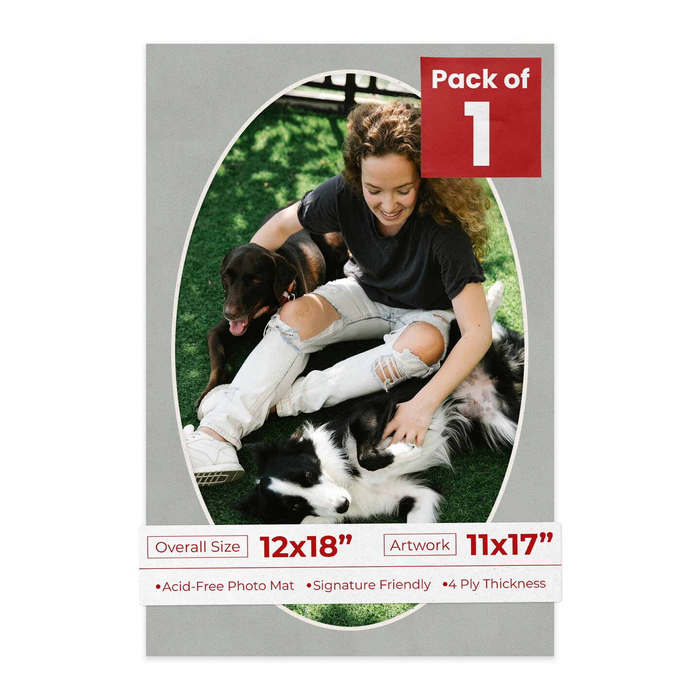 Light Grey Suede Mat Board for 12x18 Frames - Oval Opening for 11x17 Photos