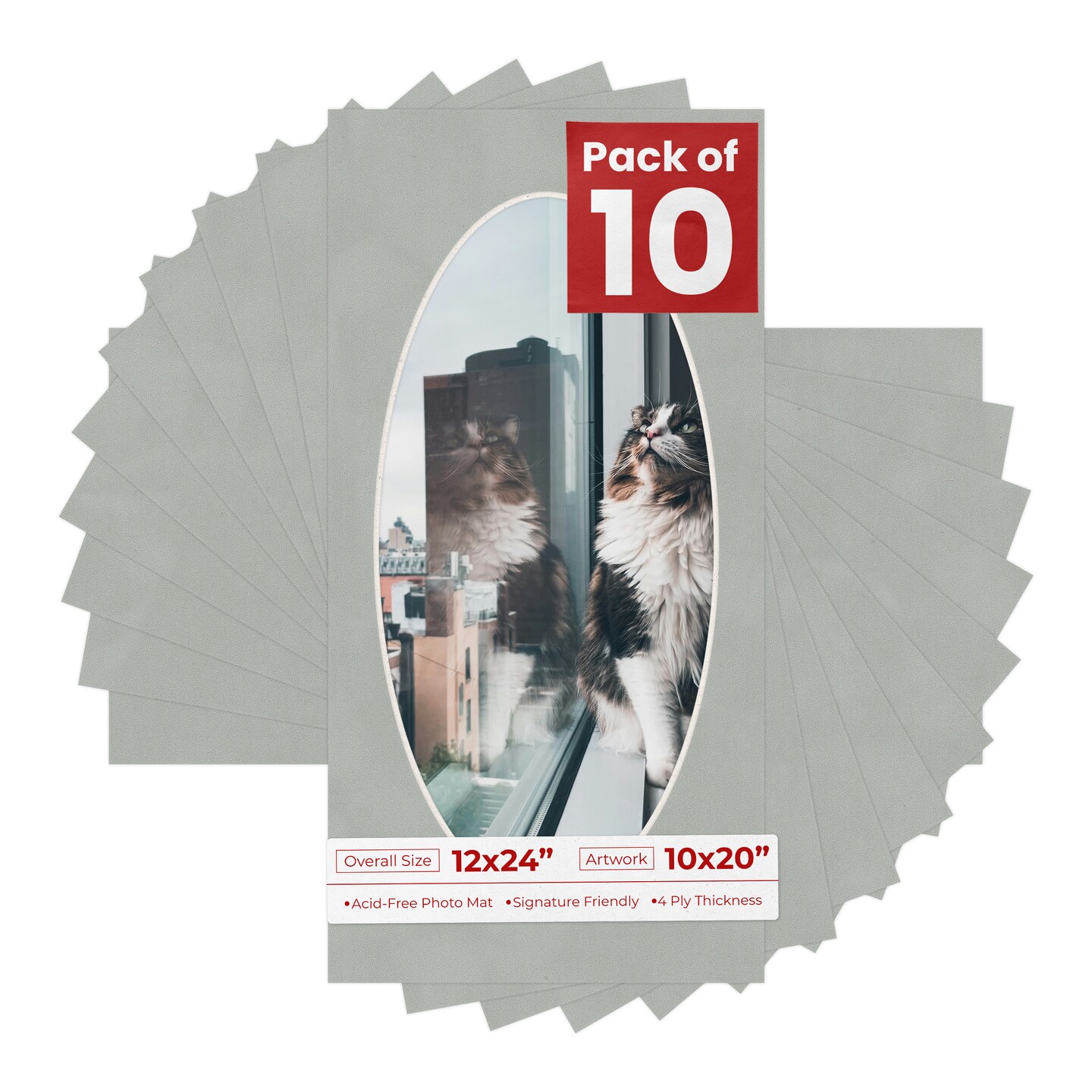 Light Grey Suede Mat Board for 12x24 Frames - Oval Opening for 10x20 Photos