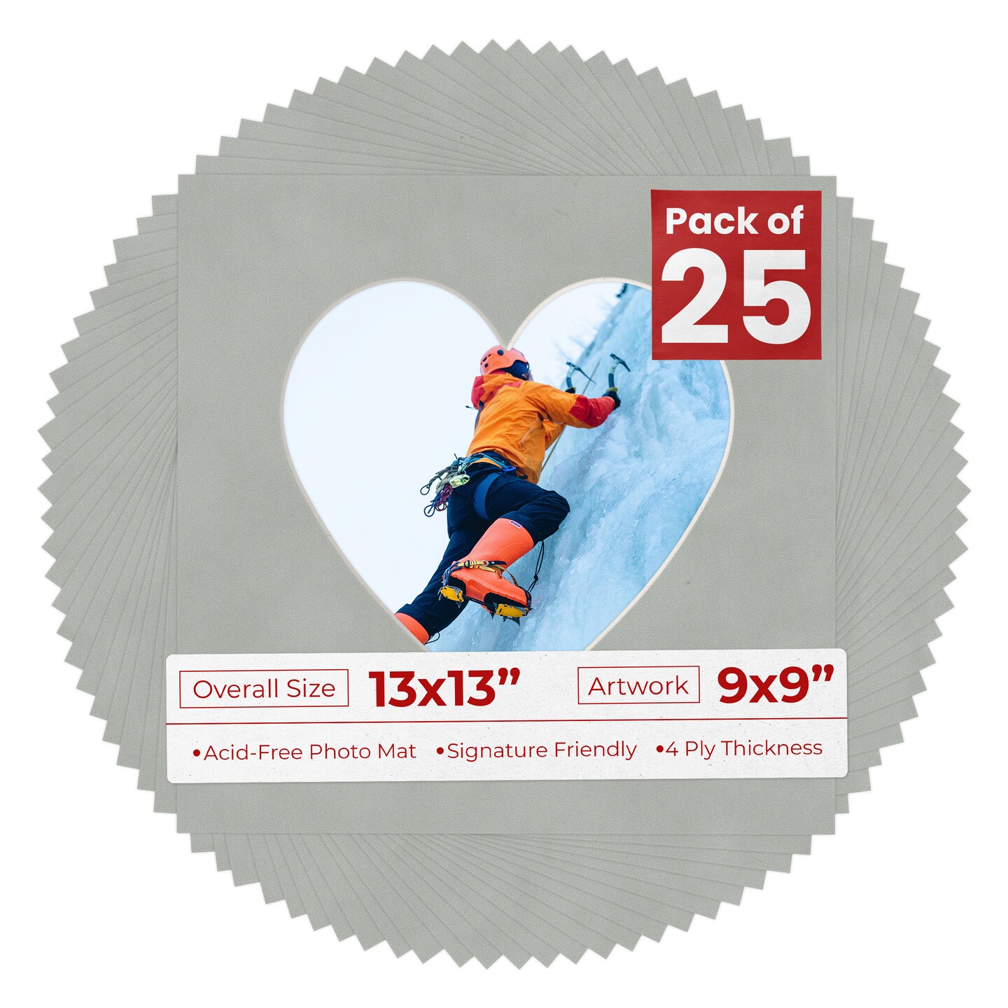 Light Grey Suede Mat Board for 13x13 Frames - Heart Opening for 9x9 Photos