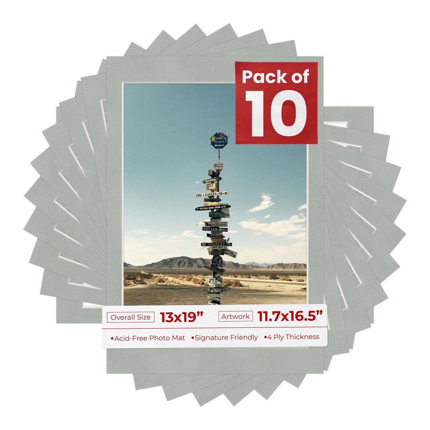 Light Grey Suede Mat Board for 13x19 Frames - Fits 11.7x16.5 Photos