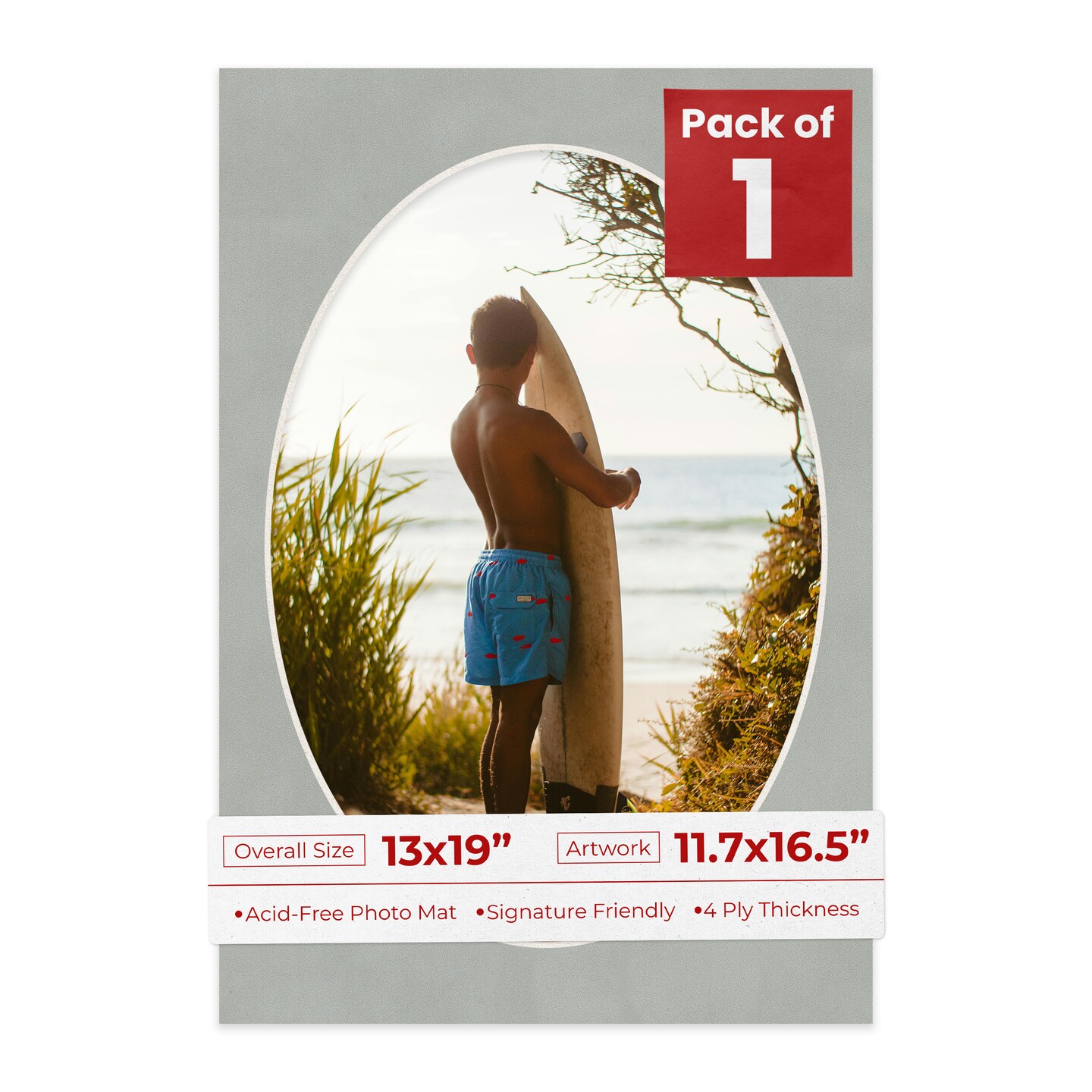 Light Grey Suede Mat Board for 13x19 Frames - Oval Opening for 11.7x16.5 Photos