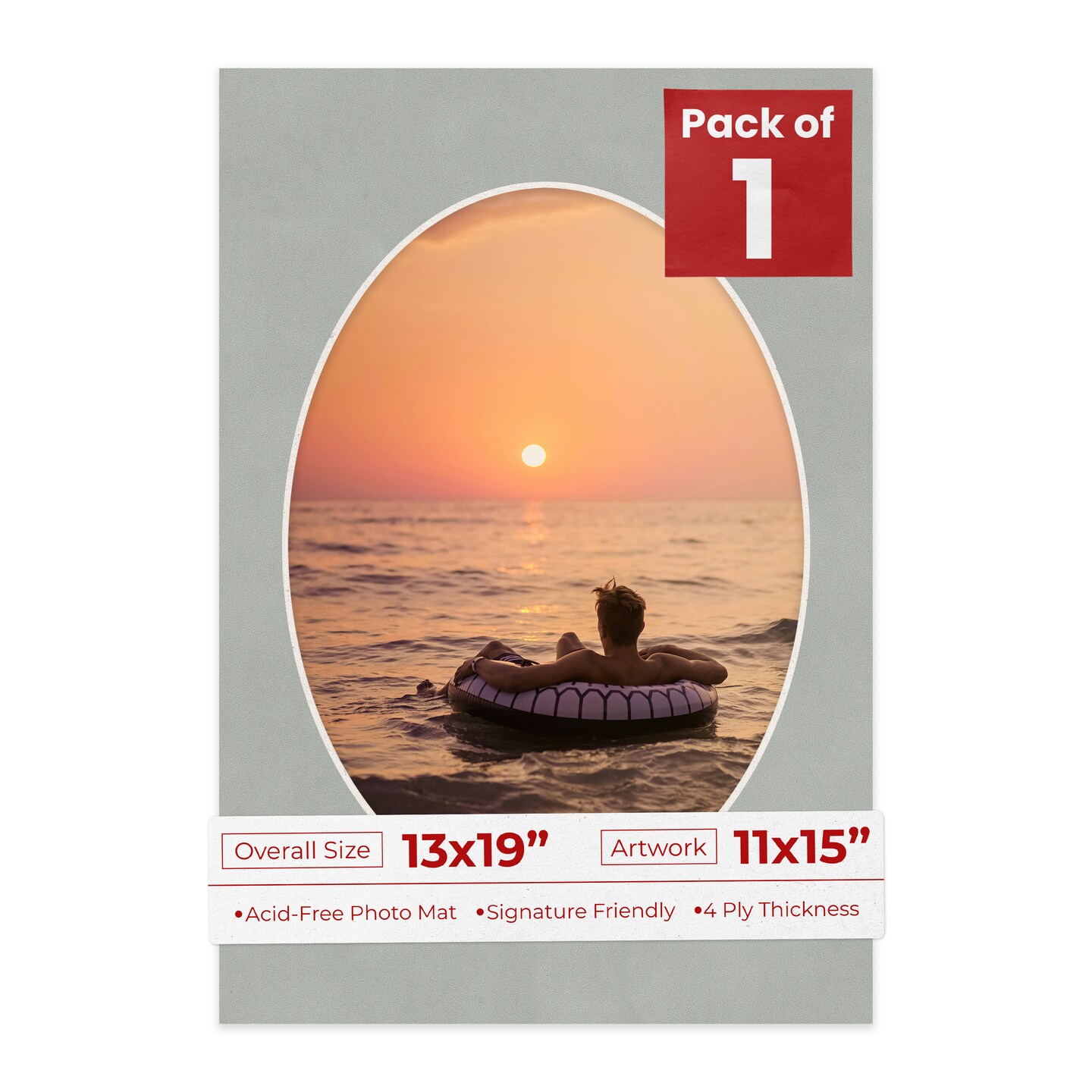 Light Grey Suede Mat Board for 13x19 Frames - Oval Opening for 11x15 Photos