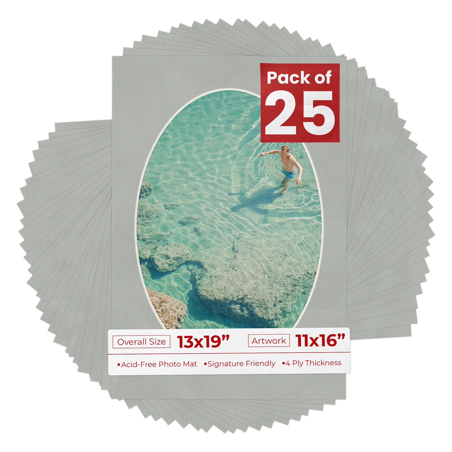 Light Grey Suede Mat Board for 13x19 Frames - Oval Opening for 11x16 Photos
