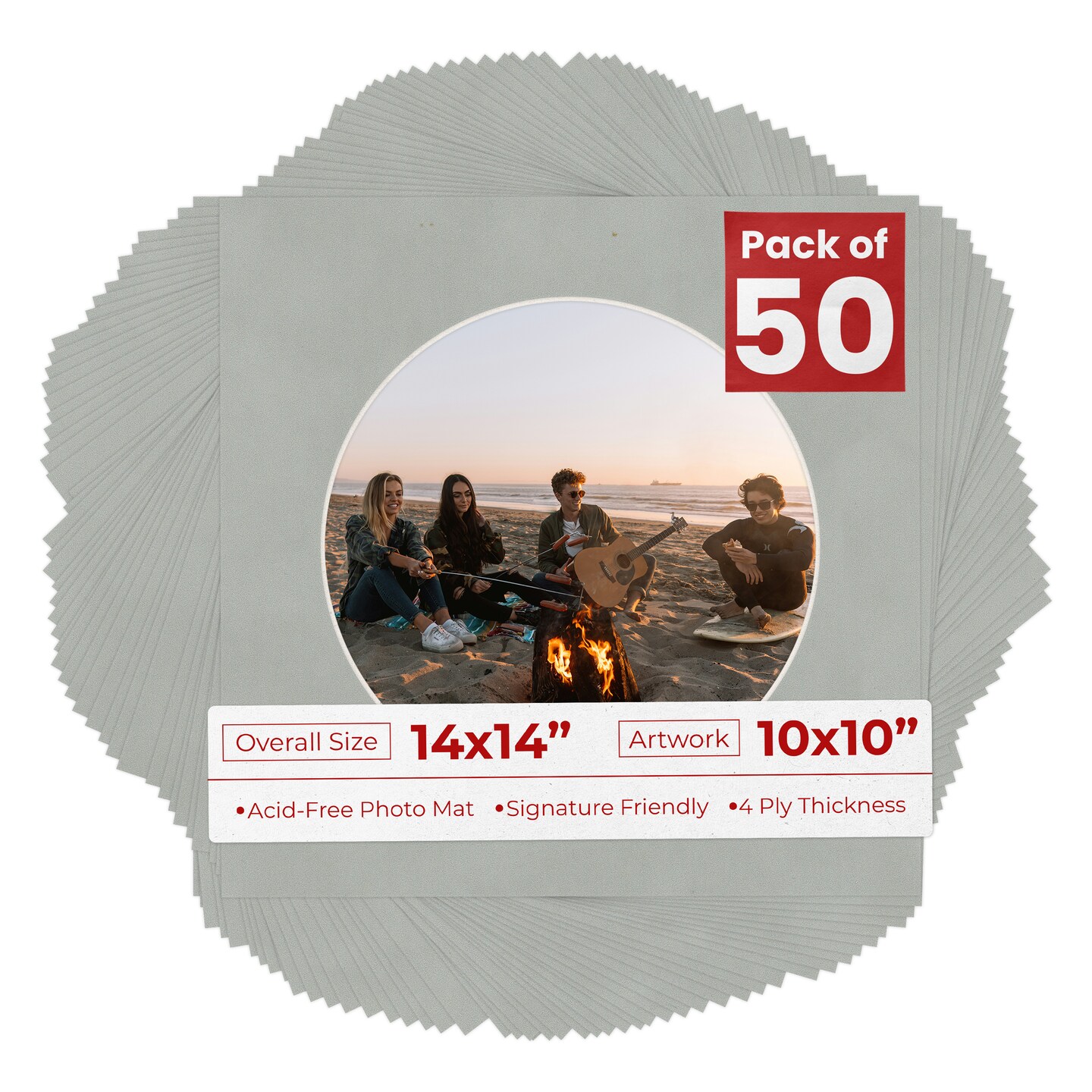 Light Grey Suede Mat Board for 14x14 Frames - Circle Opening for 10x10 Photos