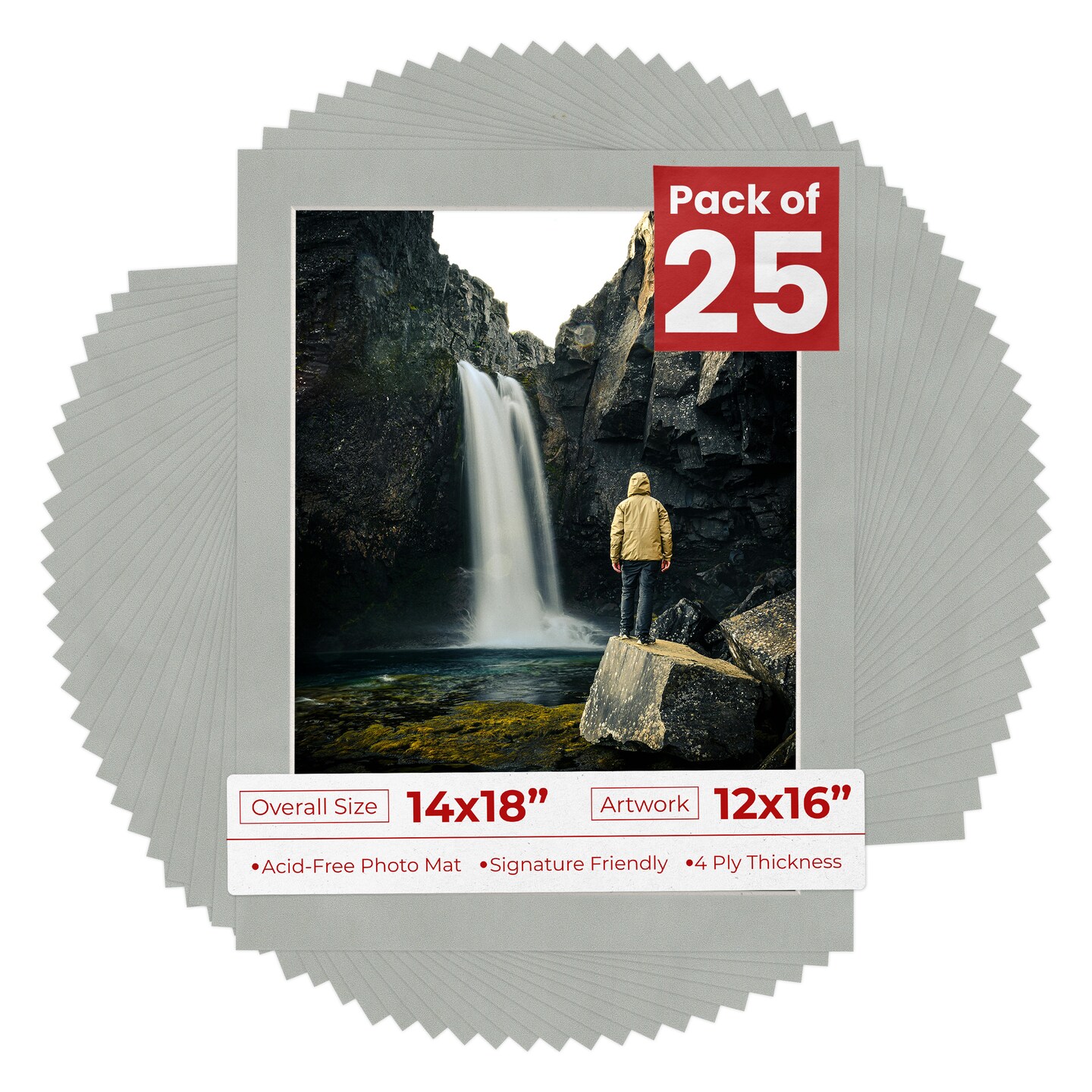 Light Grey Suede Mat Board for 14x18 Frames - Fits 12x16 Photos