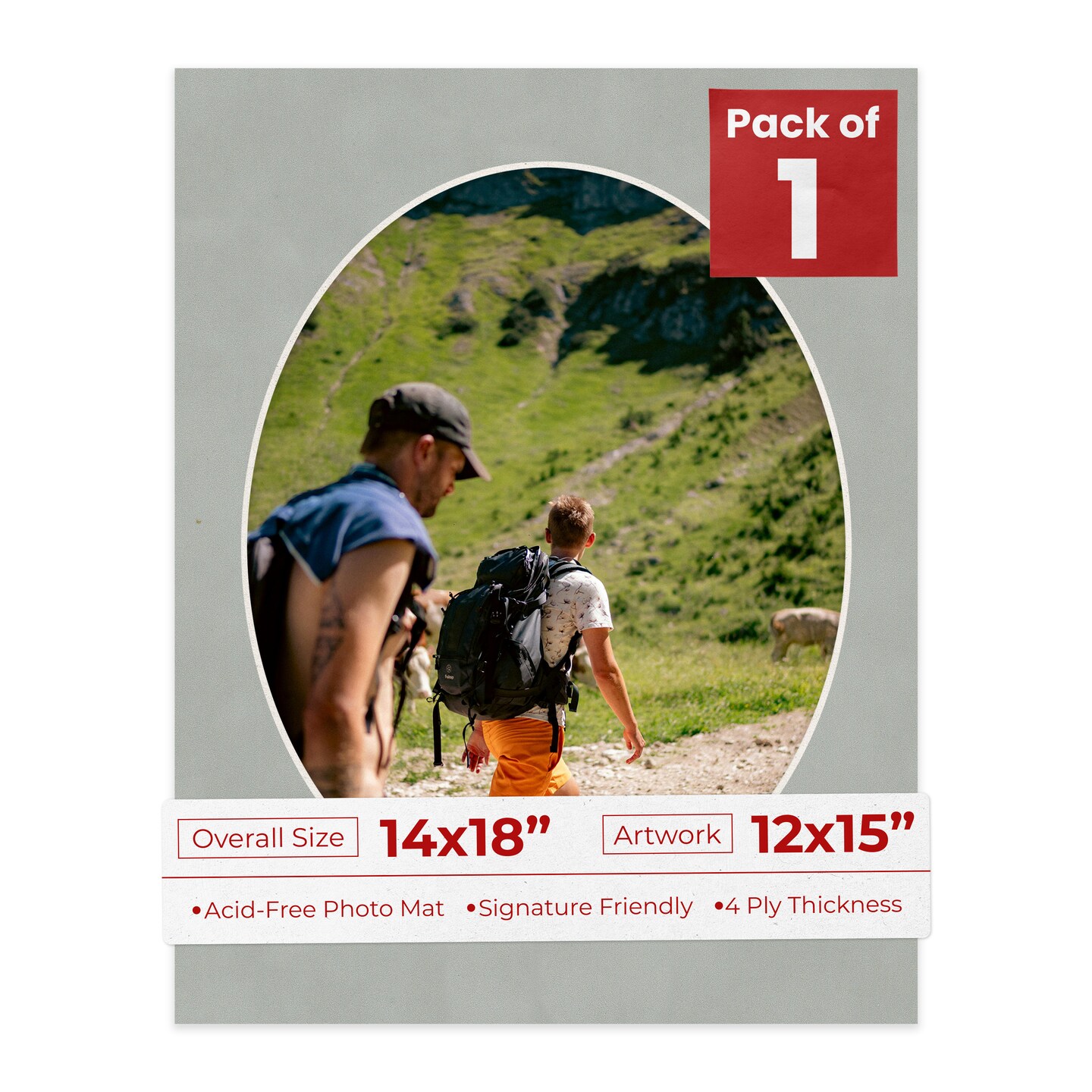 Light Grey Suede Mat Board for 14x18 Frames - Oval Opening for 12x15 Photos