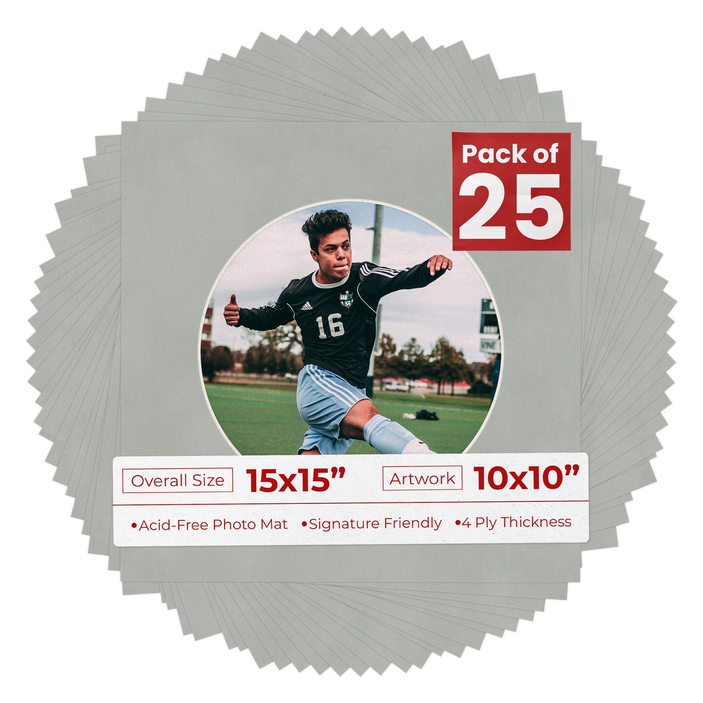 Light Grey Suede Mat Board for 15x15 Frames - Circle Opening for 10x10 Photos