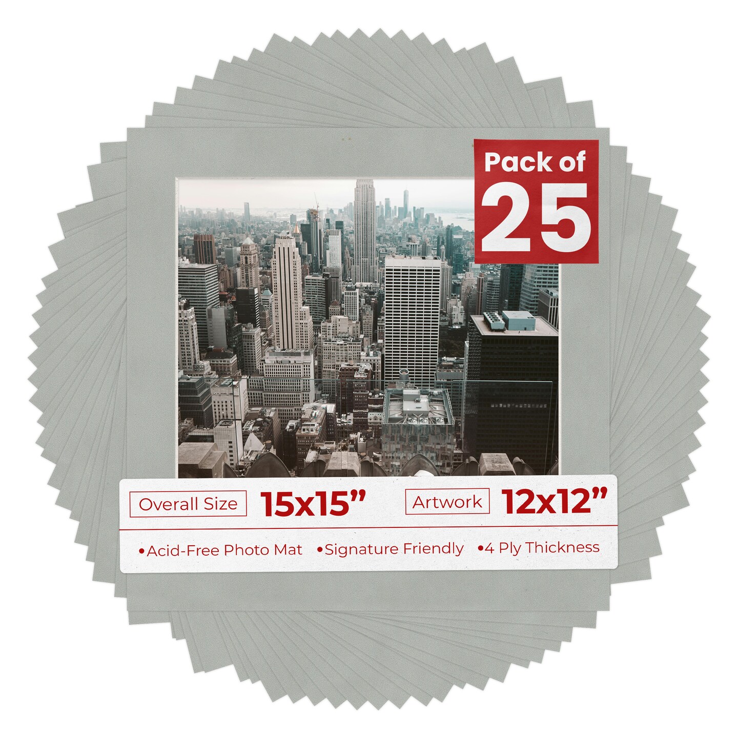 Light Grey Suede Mat Board for 15x15 Frames - Fits 12x12 Photos