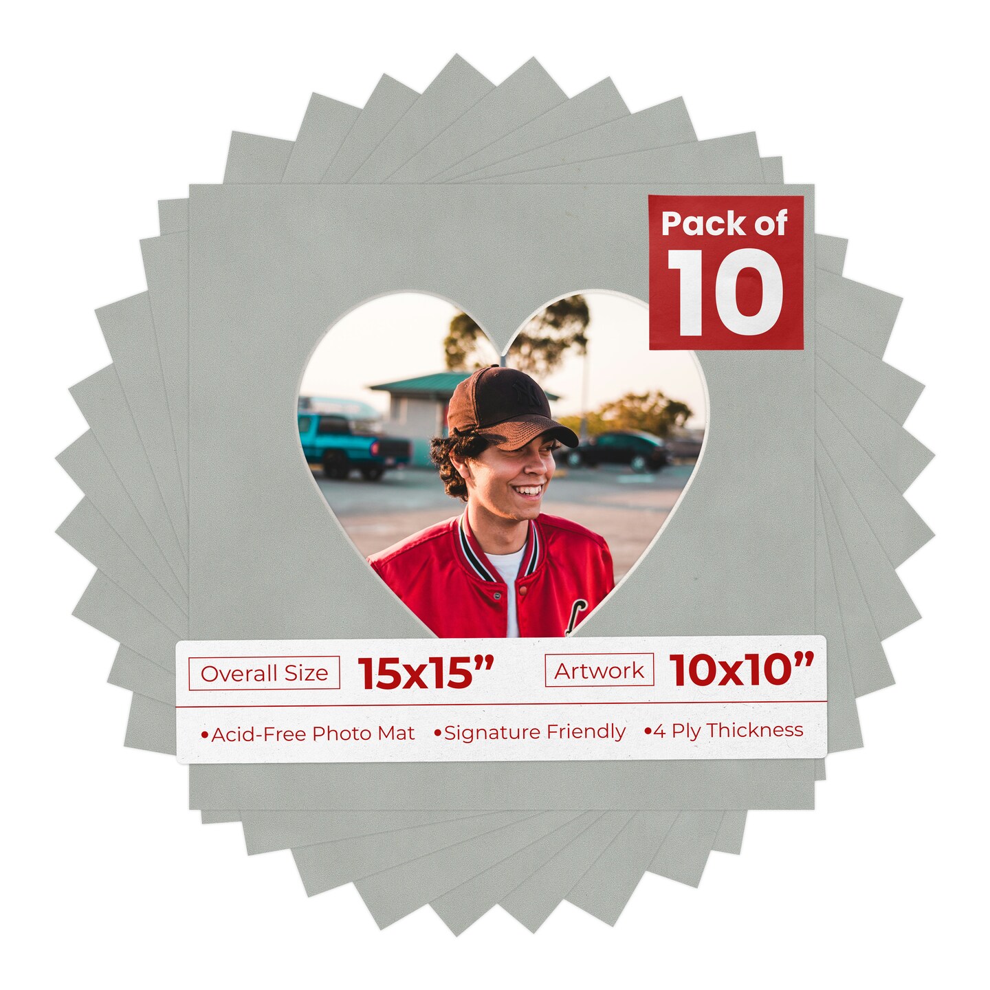 Light Grey Suede Mat Board for 15x15 Frames - Heart Opening for 10x10 Photos
