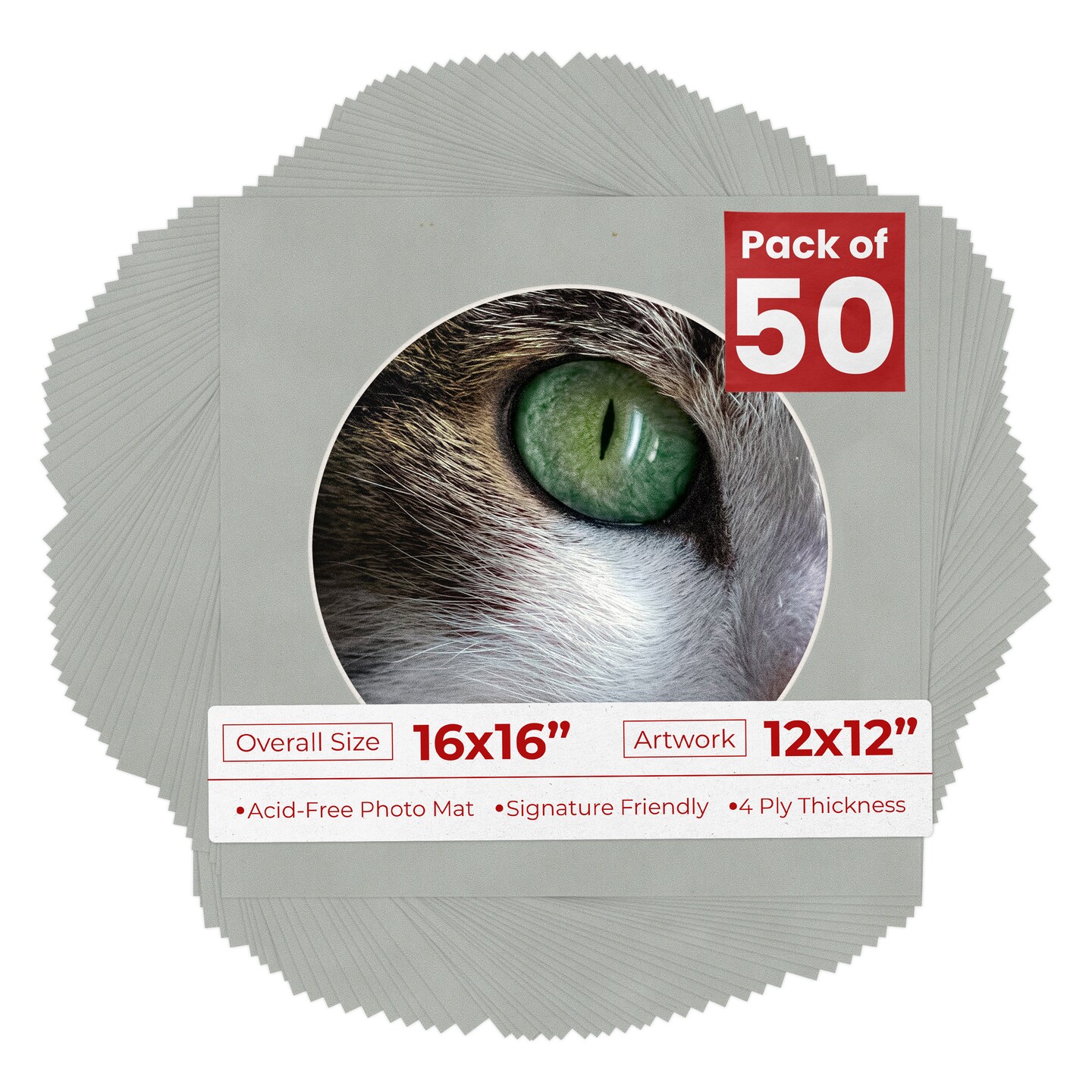 Light Grey Suede Mat Board for 16x16 Frames - Circle Opening for 12x12 Photos