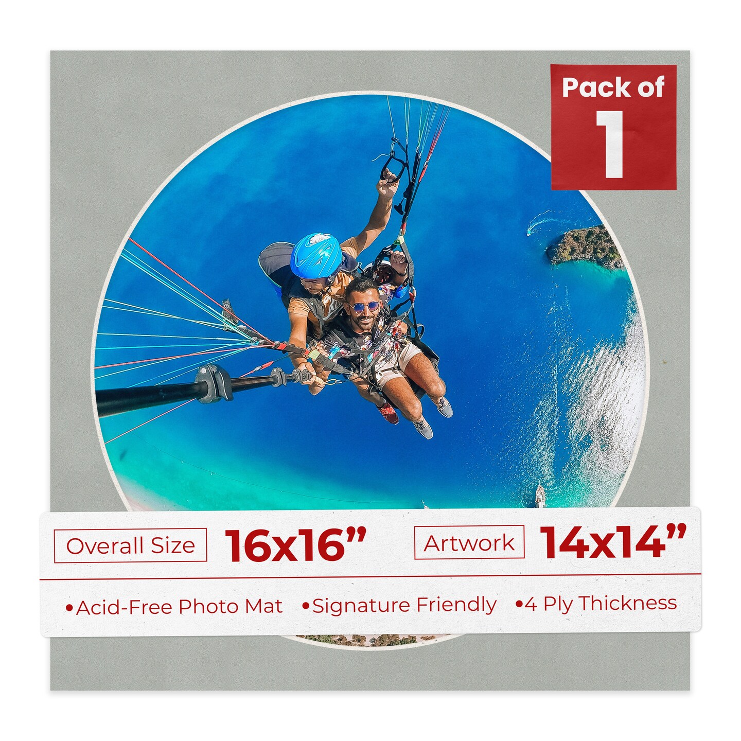 Light Grey Suede Mat Board for 16x16 Frames - Circle Opening for 14x14 Photos