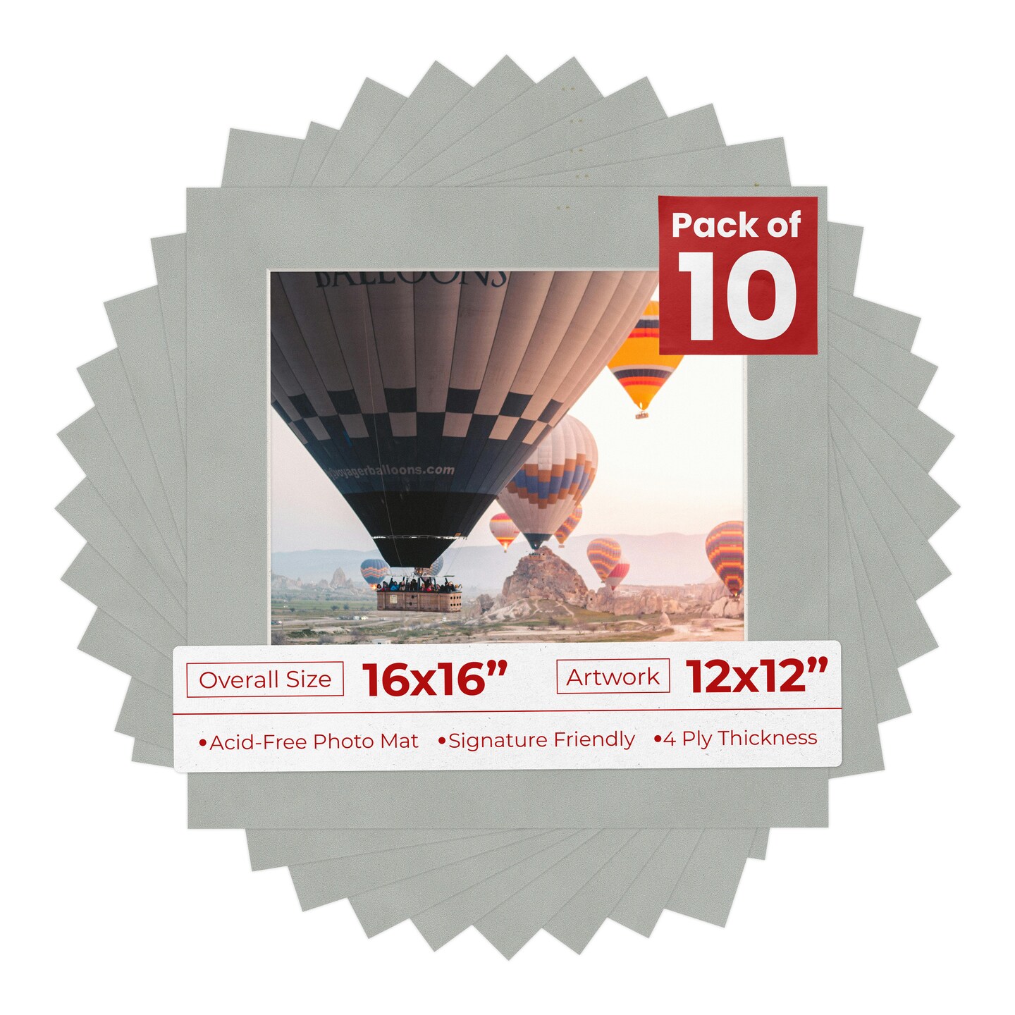 Light Grey Suede Mat Board for 16x16 Frames - Fits 12x12 Photos