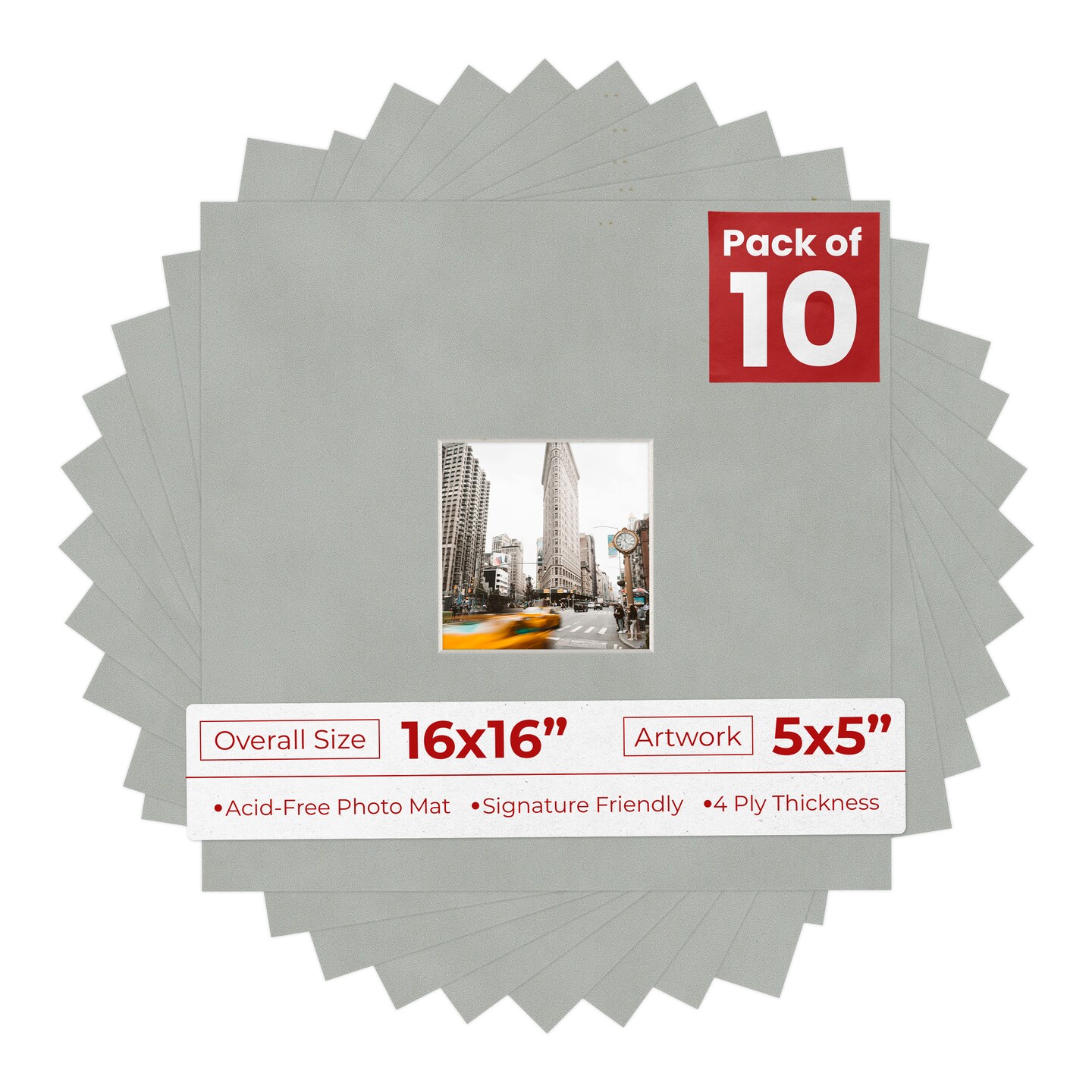 Light Grey Suede Mat Board for 16x16 Frames - Fits 5x5 Photos