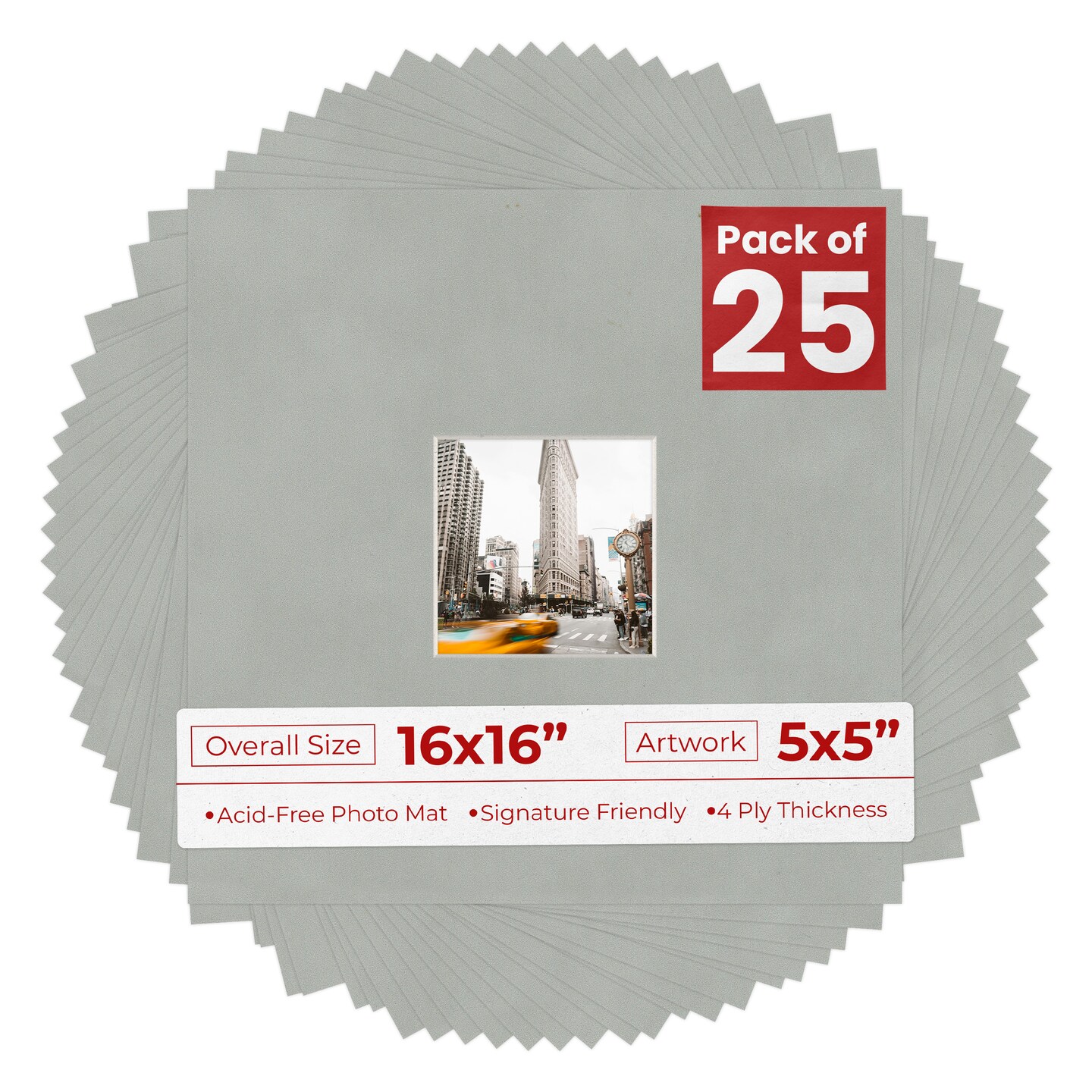 Light Grey Suede Mat Board for 16x16 Frames - Fits 5x5 Photos